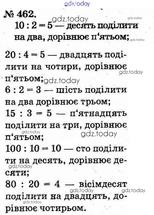 На страницах сайта gdz.today вы найдете учебный и вспомогательный материал, направленный на улучшения знаний школьной программы. ГДЗ - онлайн мир знаний Рішення до Арифметичні дії множення та ділення 462 Учебнику по Математике для 2 класса Богданович, Лишенко Генеза 2012