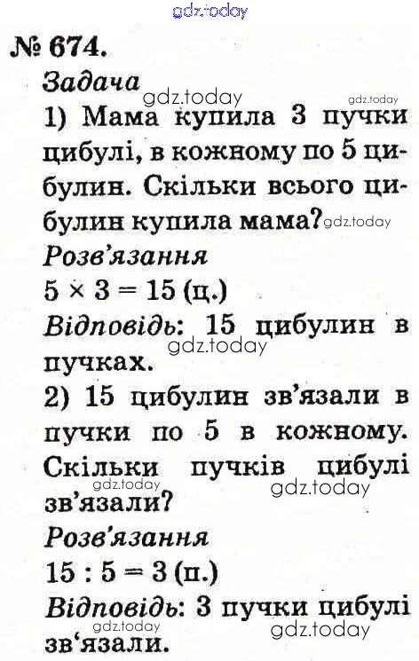 Ответы к Рішення до Арифметичні дії множення та ділення 674 Учебнику по Математике для 2 класса Богданович, Лишенко Генеза 2012