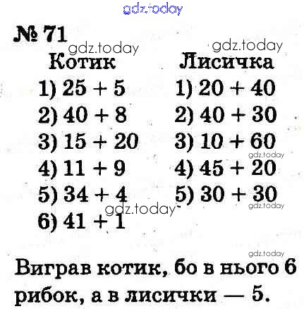 На страницах сайта gdz.today вы найдете учебный и вспомогательный материал, направленный на улучшения знаний школьной программы. ГДЗ - онлайн мир знаний Рішення до Розділ 1 71 Учебнику по Математике для 2 класса Оляницкая, Ривкинд Освiта 2012
