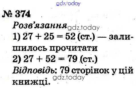 На страницах сайта gdz.today вы найдете учебный и вспомогательный материал, направленный на улучшения знаний школьной программы. ГДЗ - онлайн мир знаний Рішення до Розділ 3 374 Учебнику по Математике для 2 класса Оляницкая, Ривкинд Освiта 2012
