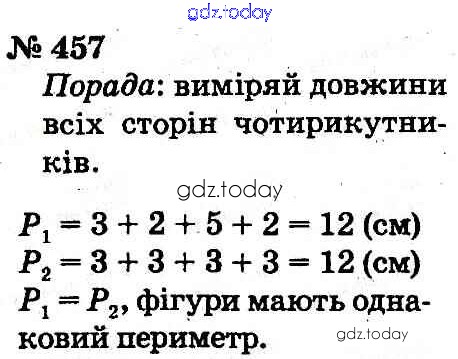 На страницах сайта gdz.today вы найдете учебный и вспомогательный материал, направленный на улучшения знаний школьной программы. ГДЗ - онлайн мир знаний Рішення до Розділ 3 457 Учебнику по Математике для 2 класса Оляницкая, Ривкинд Освiта 2012