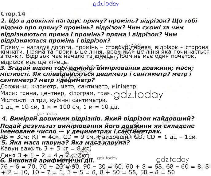 На страницах сайта gdz.today вы найдете учебный и вспомогательный материал, направленный на улучшения знаний школьной программы. ГДЗ - онлайн мир знаний Рішення до Розділ 1 14 Учебнику по Математике для 2 класса Оноприенко, Скворцова Ранок 2019