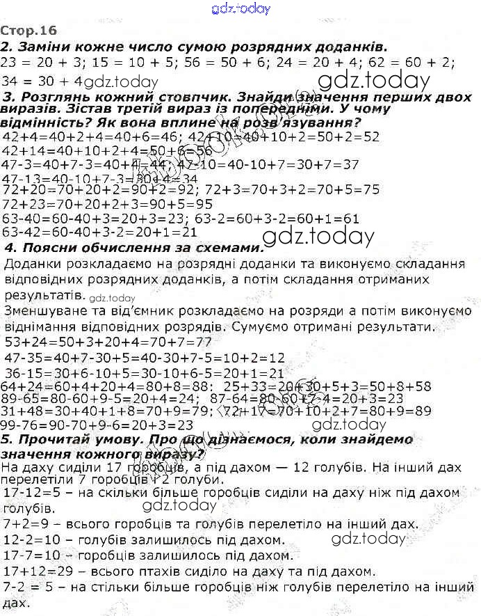 На страницах сайта gdz.today вы найдете учебный и вспомогательный материал, направленный на улучшения знаний школьной программы. ГДЗ - онлайн мир знаний Рішення до Розділ 1 16 Учебнику по Математике для 2 класса Оноприенко, Скворцова Ранок 2019
