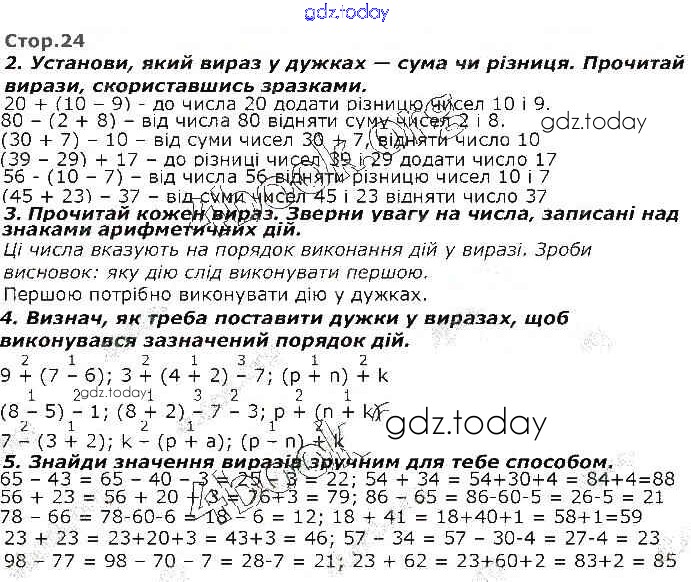 На страницах сайта gdz.today вы найдете учебный и вспомогательный материал, направленный на улучшения знаний школьной программы. ГДЗ - онлайн мир знаний Рішення до Розділ 2 24 Учебнику по Математике для 2 класса Оноприенко, Скворцова Ранок 2019