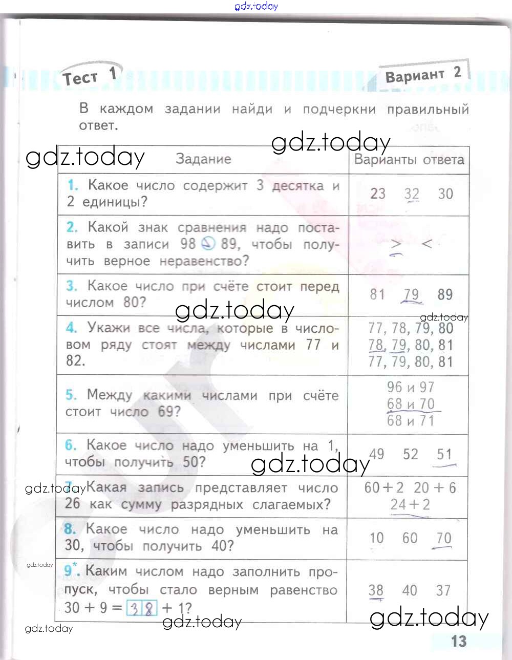 На страницах сайта gdz.today вы найдете учебный и вспомогательный материал, направленный на улучшения знаний школьной программы. ГДЗ - онлайн мир знаний Страницы (решение) 13 Проверочным работам по Математике для 2 класса Волкова Просвещение Школа России 2014