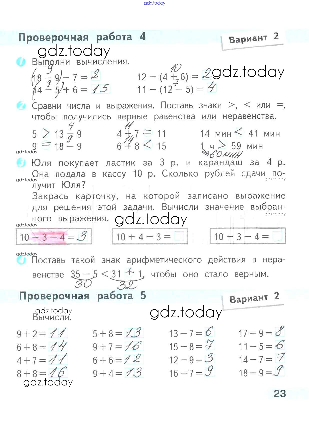 На страницах сайта gdz.today вы найдете учебный и вспомогательный материал, направленный на улучшения знаний школьной программы. ГДЗ - онлайн мир знаний Страницы (решение) 23 Проверочным работам по Математике для 2 класса Волкова Просвещение Школа России 2014