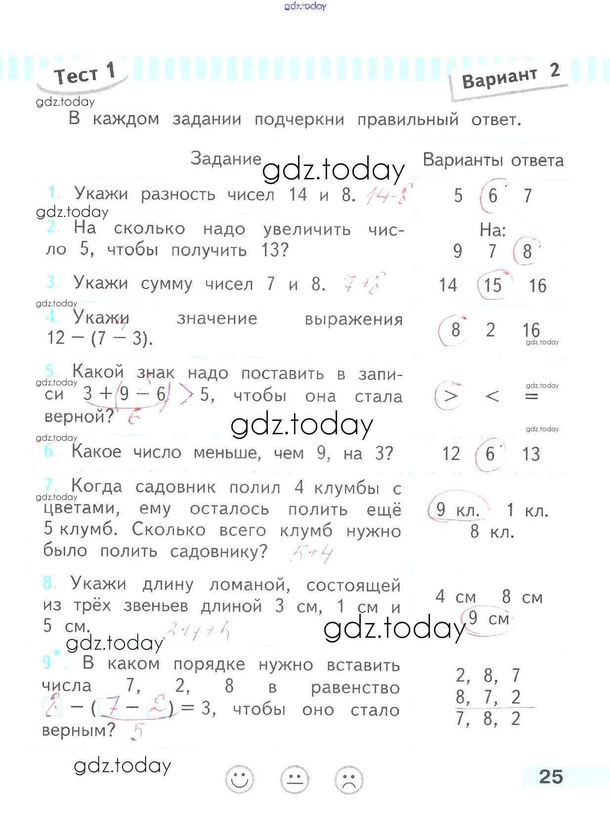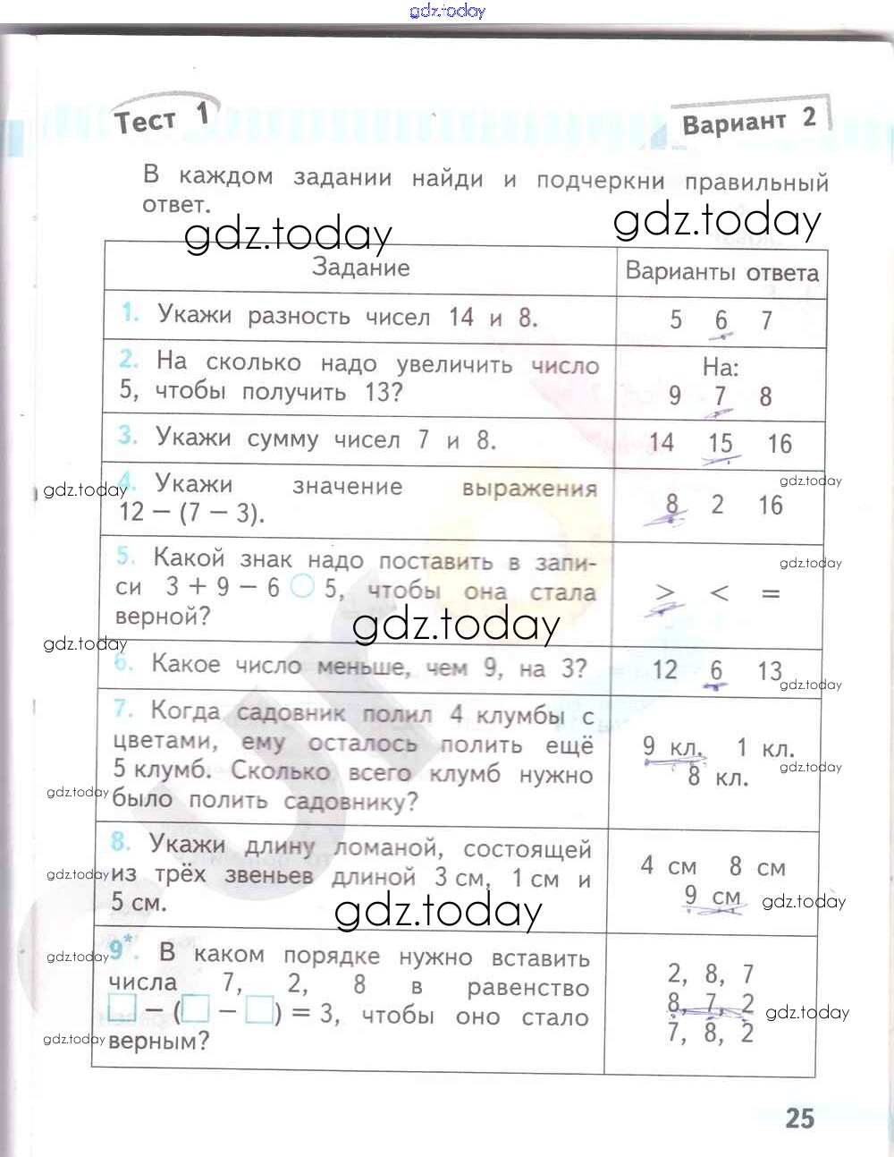 На страницах сайта gdz.today вы найдете учебный и вспомогательный материал, направленный на улучшения знаний школьной программы. ГДЗ - онлайн мир знаний Страницы (решение) 25 Проверочным работам по Математике для 2 класса Волкова Просвещение Школа России 2014