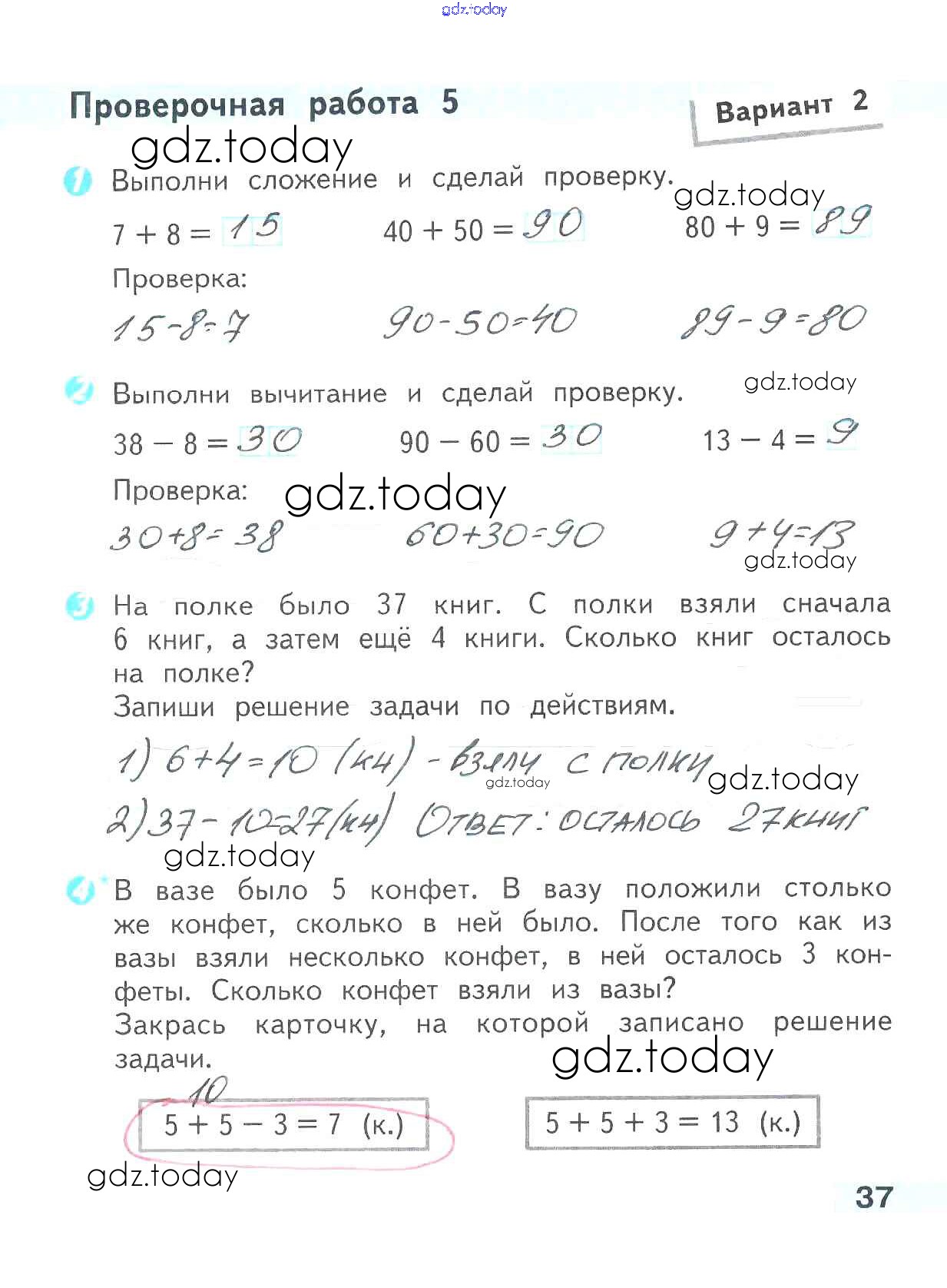 На страницах сайта gdz.today вы найдете учебный и вспомогательный материал, направленный на улучшения знаний школьной программы. ГДЗ - онлайн мир знаний Страницы (решение) 37 Проверочным работам по Математике для 2 класса Волкова Просвещение Школа России 2014