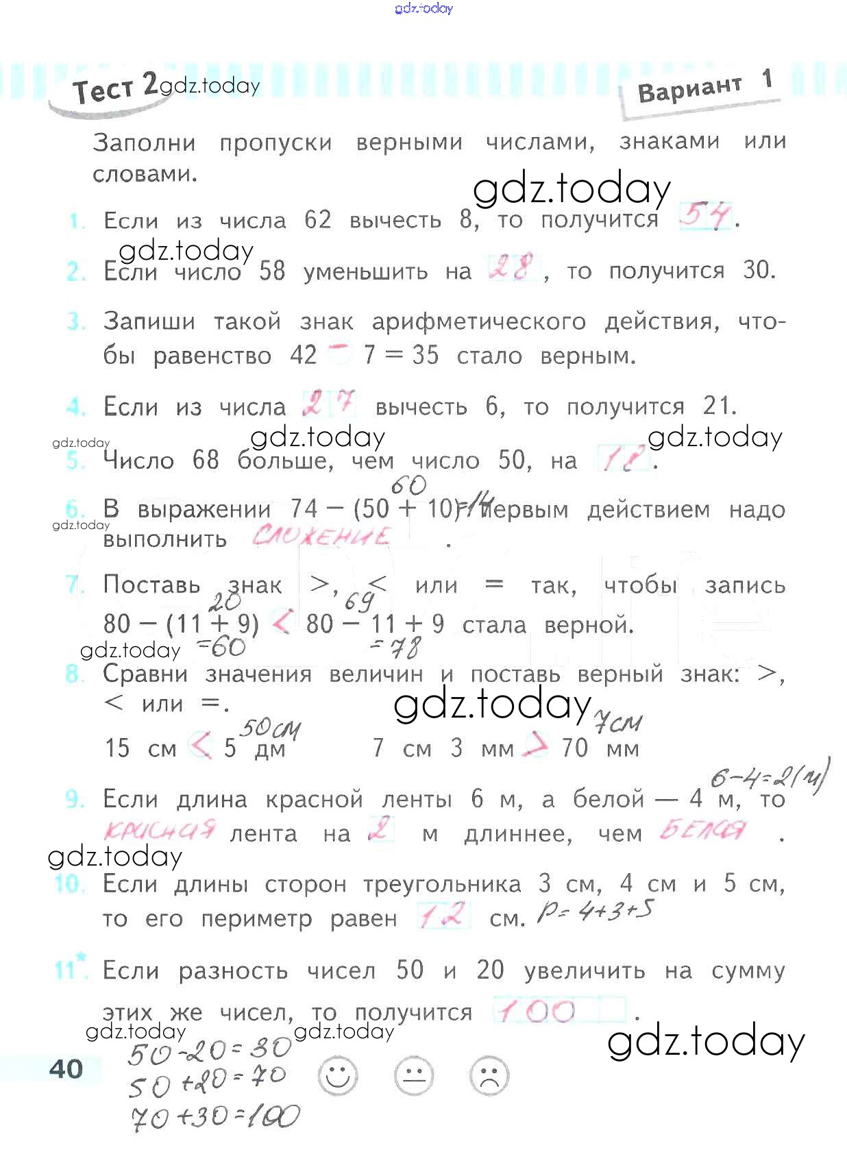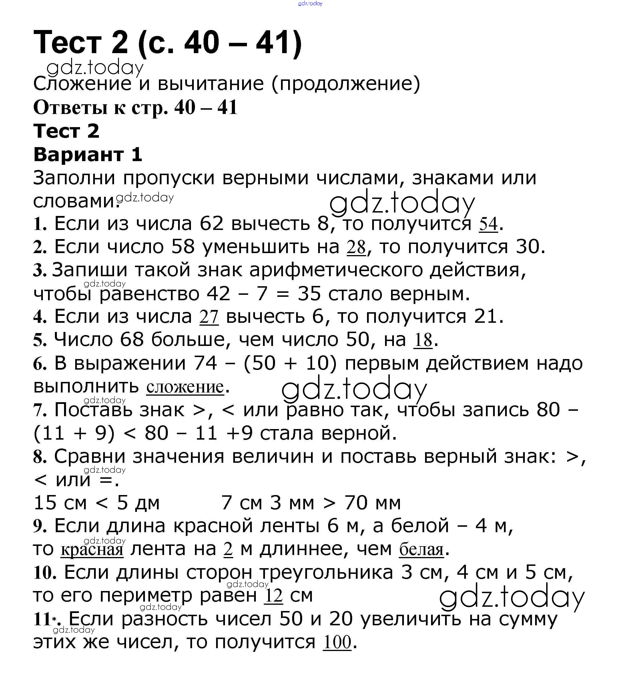 На страницах сайта gdz.today вы найдете учебный и вспомогательный материал, направленный на улучшения знаний школьной программы. ГДЗ - онлайн мир знаний Страницы (решение) 40 Проверочным работам по Математике для 2 класса Волкова Просвещение Школа России 2014