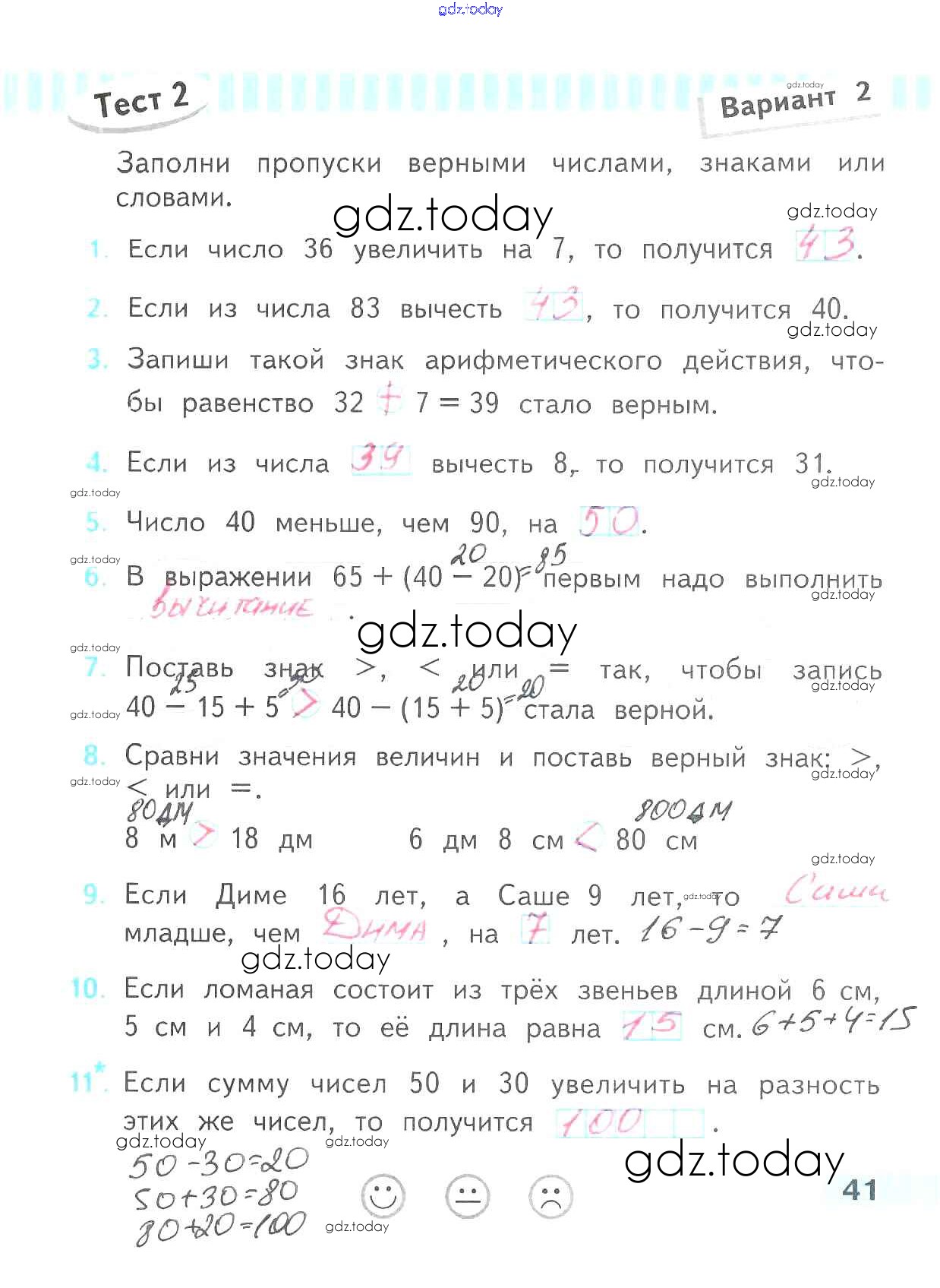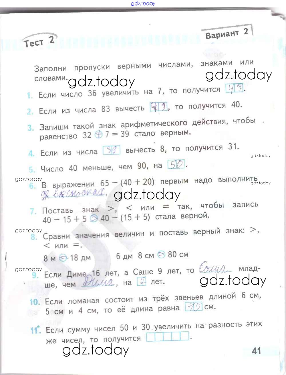 На страницах сайта gdz.today вы найдете учебный и вспомогательный материал, направленный на улучшения знаний школьной программы. ГДЗ - онлайн мир знаний Страницы (решение) 41 Проверочным работам по Математике для 2 класса Волкова Просвещение Школа России 2014