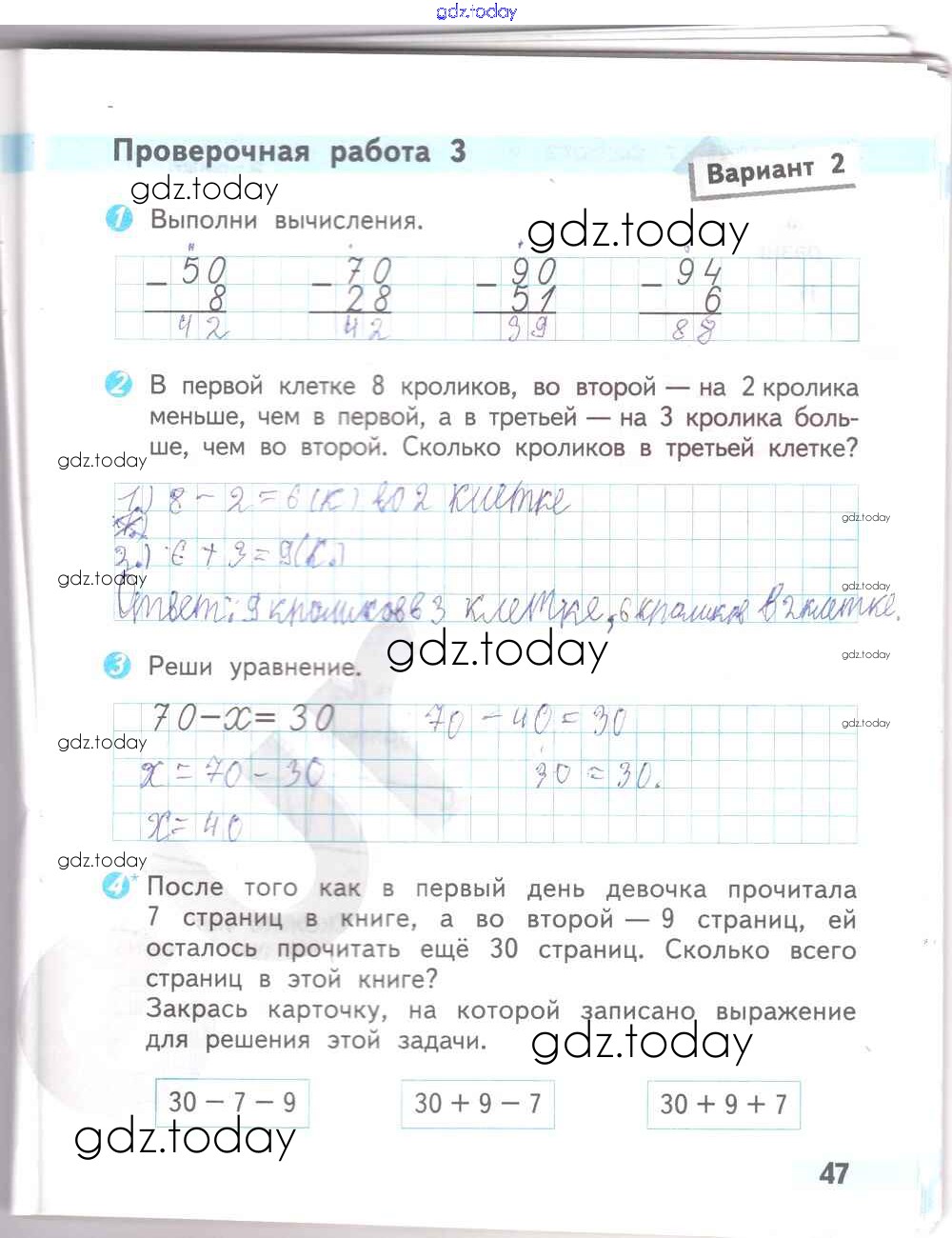 На страницах сайта gdz.today вы найдете учебный и вспомогательный материал, направленный на улучшения знаний школьной программы. ГДЗ - онлайн мир знаний Страницы (решение) 47 Проверочным работам по Математике для 2 класса Волкова Просвещение Школа России 2014