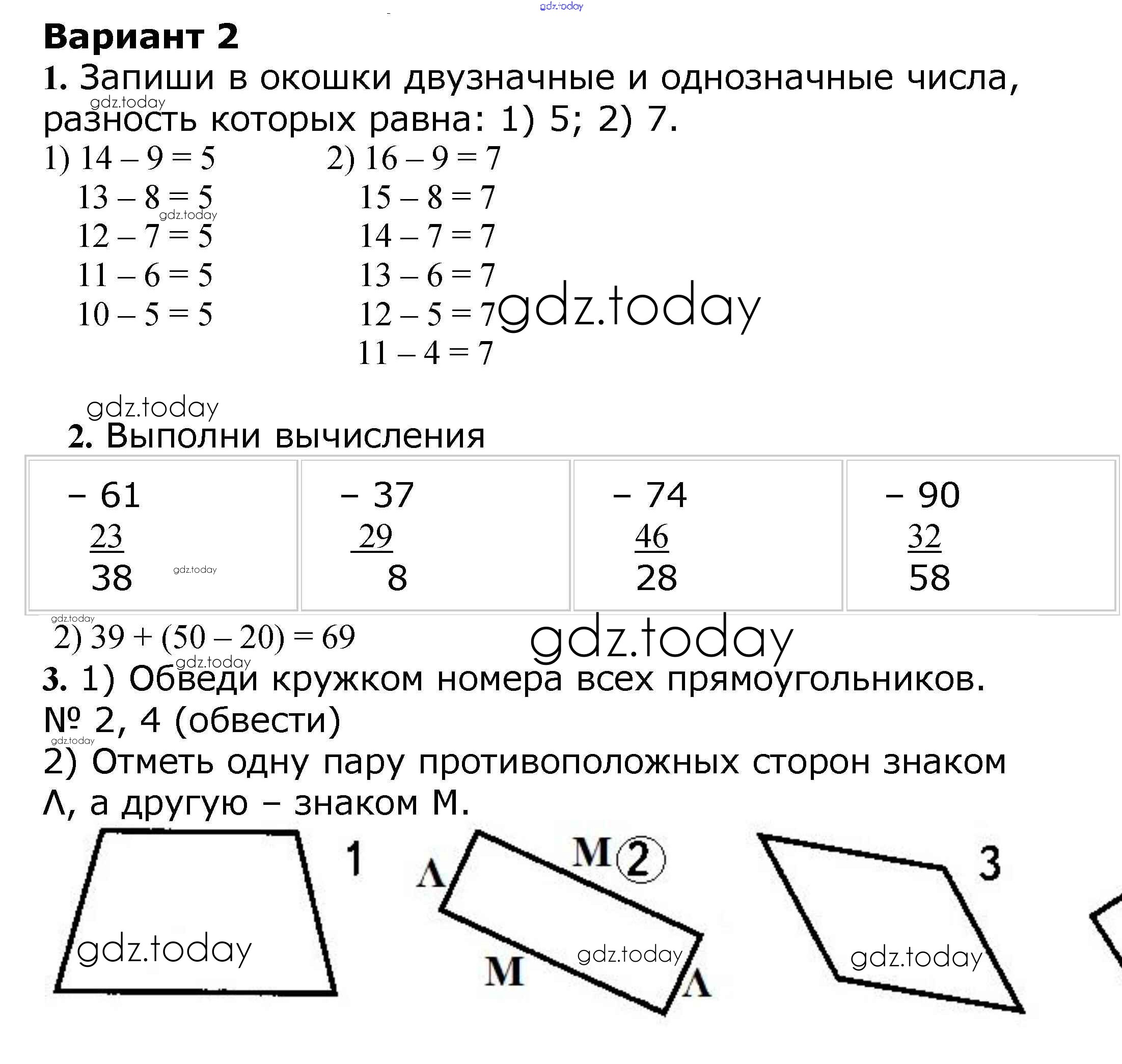 На страницах сайта gdz.today вы найдете учебный и вспомогательный материал, направленный на улучшения знаний школьной программы. ГДЗ - онлайн мир знаний Страницы (решение) 49 Проверочным работам по Математике для 2 класса Волкова Просвещение Школа России 2014