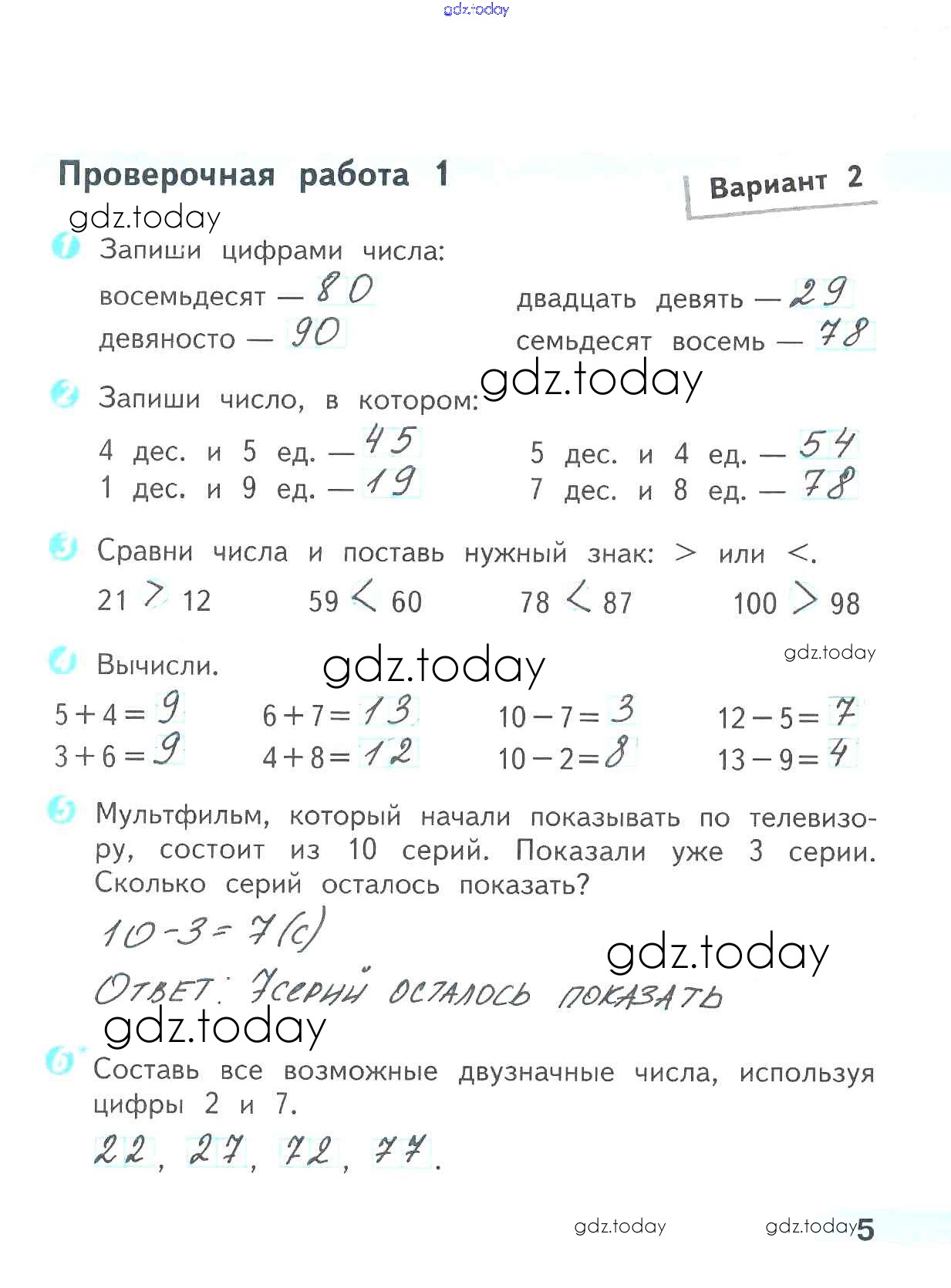 На страницах сайта gdz.today вы найдете учебный и вспомогательный материал, направленный на улучшения знаний школьной программы. ГДЗ - онлайн мир знаний Страницы (решение) 5 Проверочным работам по Математике для 2 класса Волкова Просвещение Школа России 2014