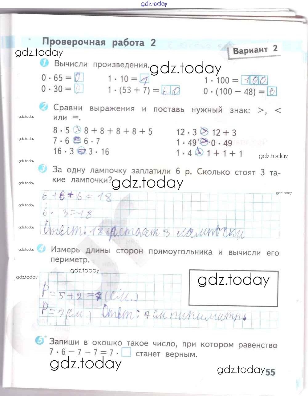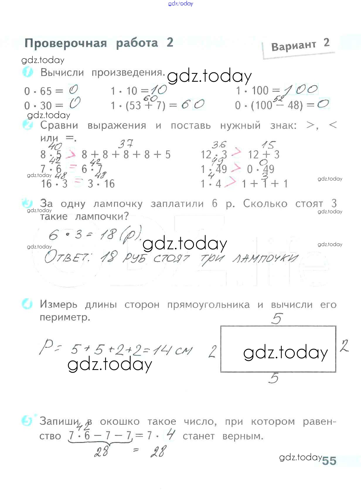 На страницах сайта gdz.today вы найдете учебный и вспомогательный материал, направленный на улучшения знаний школьной программы. ГДЗ - онлайн мир знаний Страницы (решение) 55 Проверочным работам по Математике для 2 класса Волкова Просвещение Школа России 2014