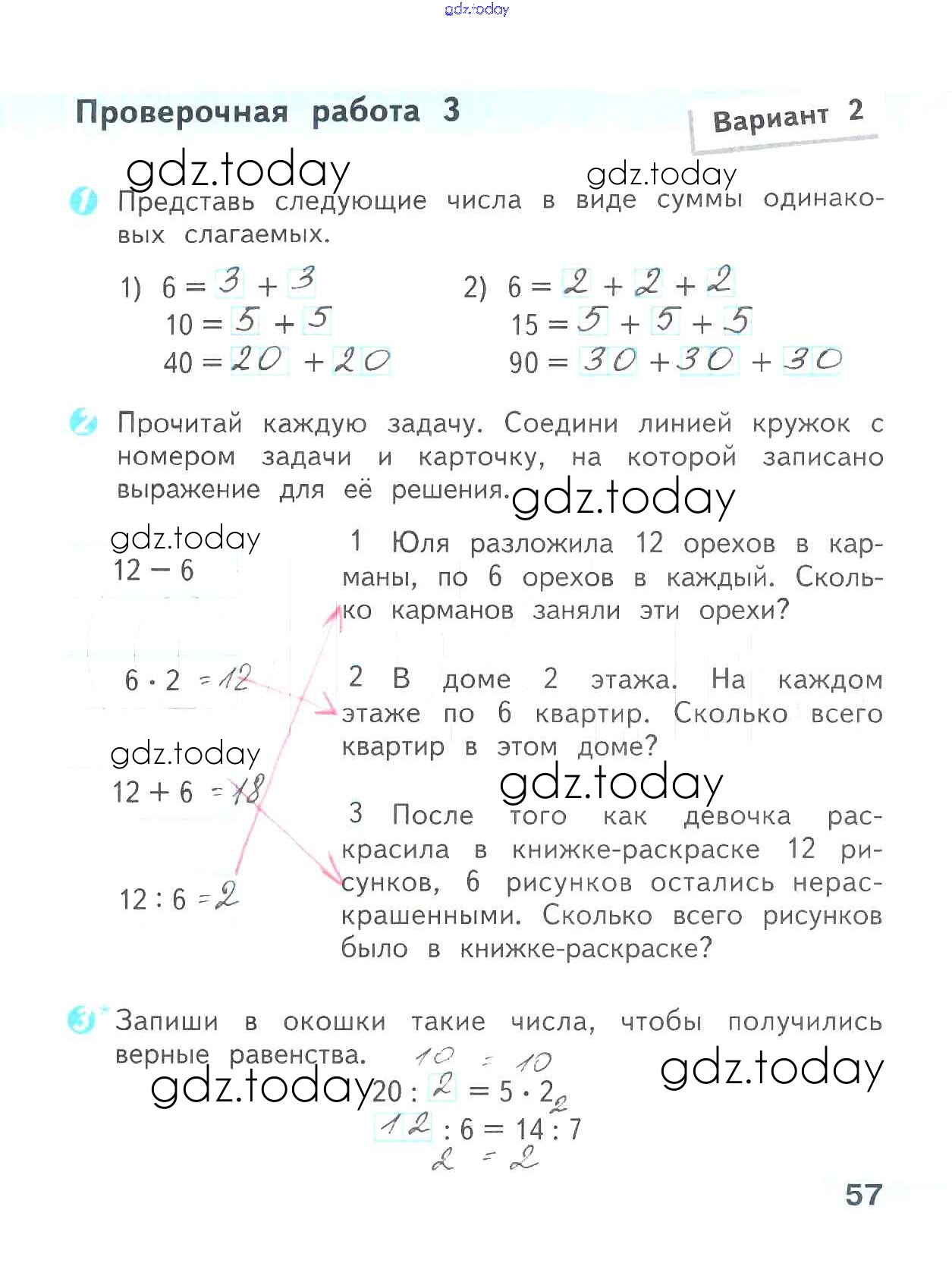 На страницах сайта gdz.today вы найдете учебный и вспомогательный материал, направленный на улучшения знаний школьной программы. ГДЗ - онлайн мир знаний Страницы (решение) 57 Проверочным работам по Математике для 2 класса Волкова Просвещение Школа России 2014