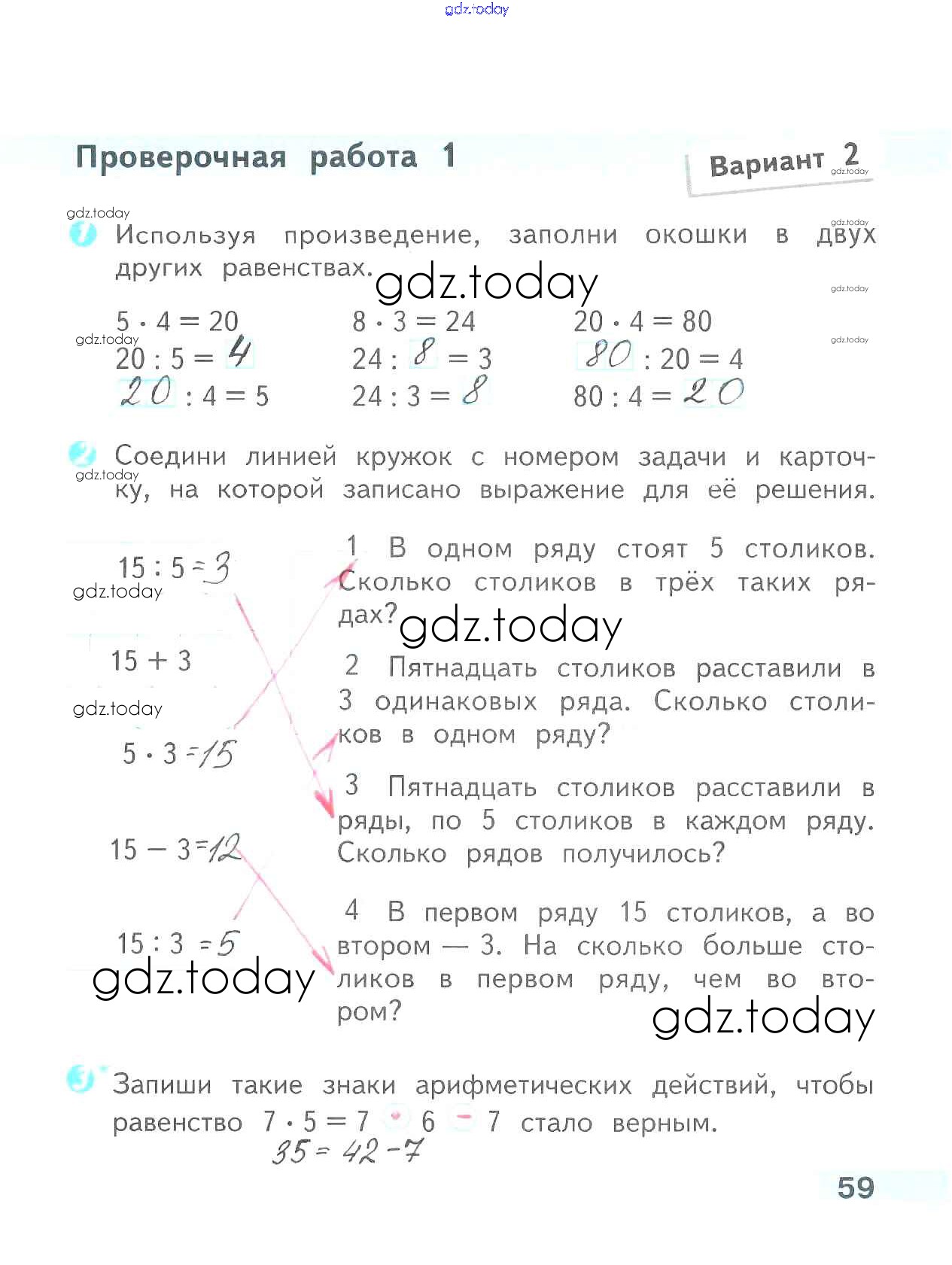 На страницах сайта gdz.today вы найдете учебный и вспомогательный материал, направленный на улучшения знаний школьной программы. ГДЗ - онлайн мир знаний Страницы (решение) 59 Проверочным работам по Математике для 2 класса Волкова Просвещение Школа России 2014
