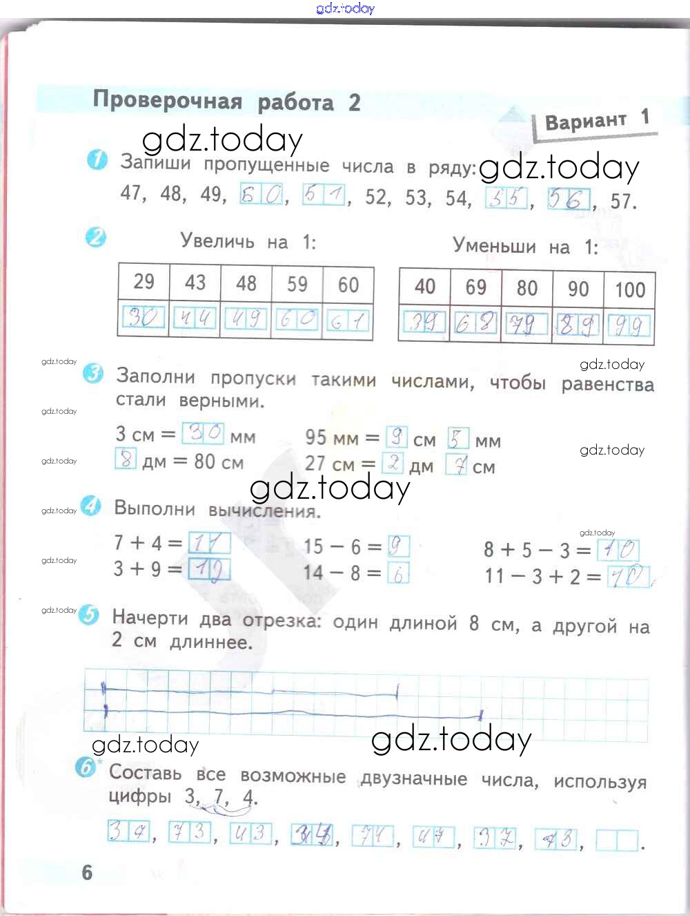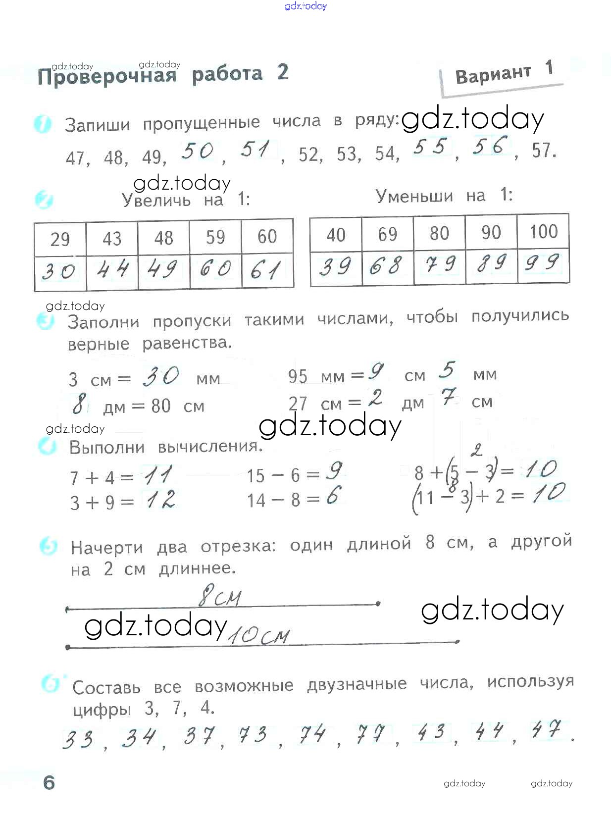 На страницах сайта gdz.today вы найдете учебный и вспомогательный материал, направленный на улучшения знаний школьной программы. ГДЗ - онлайн мир знаний Страницы (решение) 6 Проверочным работам по Математике для 2 класса Волкова Просвещение Школа России 2014