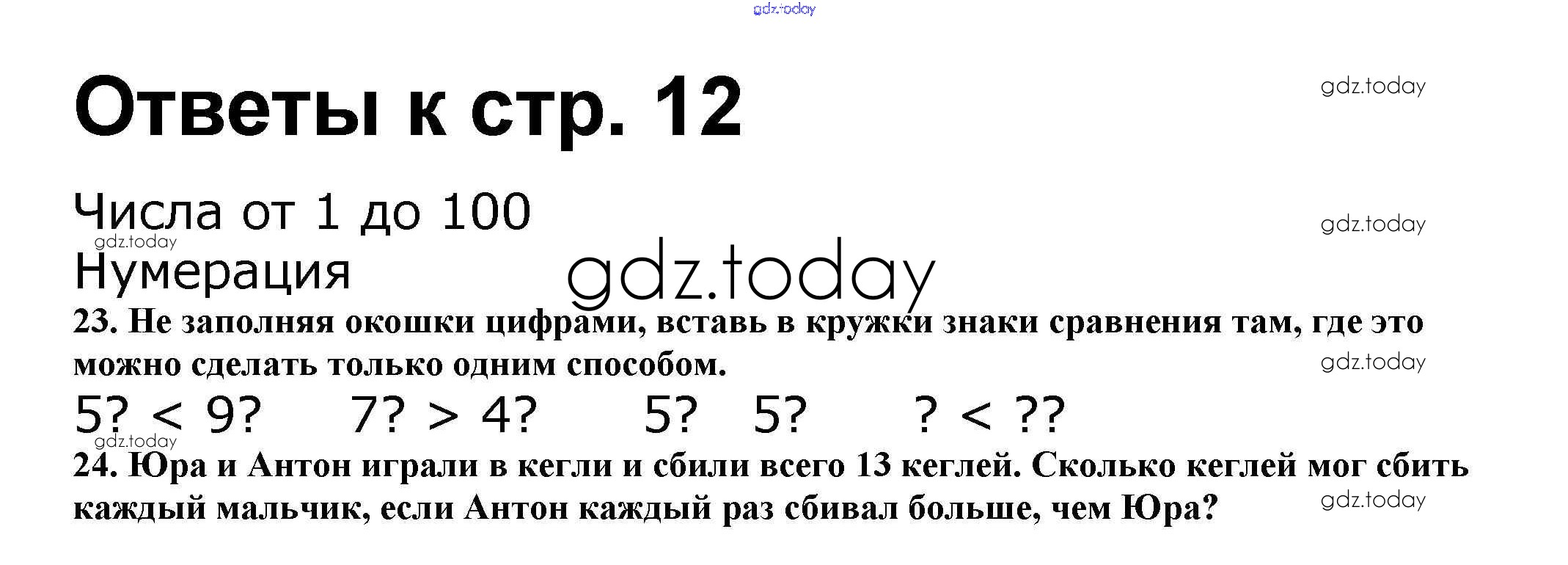 Ответы к Решение к части 1. Страницы 12 Рабочей тетради по Математике для 2 класса Волкова, Моро Просвещение Школа России 2016