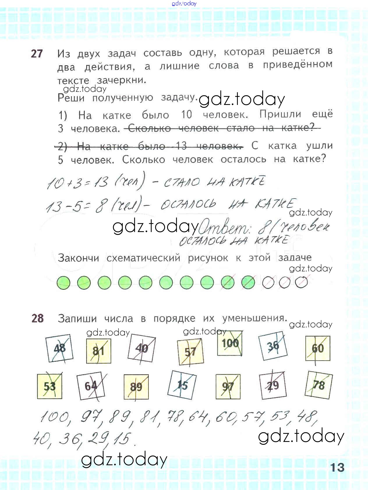 На страницах сайта gdz.today вы найдете учебный и вспомогательный материал, направленный на улучшения знаний школьной программы. ГДЗ - онлайн мир знаний Решение к части 1. Страницы 13 Рабочей тетради по Математике для 2 класса Волкова, Моро Просвещение Школа России 2016