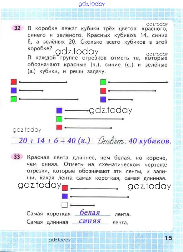 На страницах сайта gdz.today вы найдете учебный и вспомогательный материал, направленный на улучшения знаний школьной программы. ГДЗ - онлайн мир знаний Решение к части 1. Страницы 15 Рабочей тетради по Математике для 2 класса Волкова, Моро Просвещение Школа России 2016