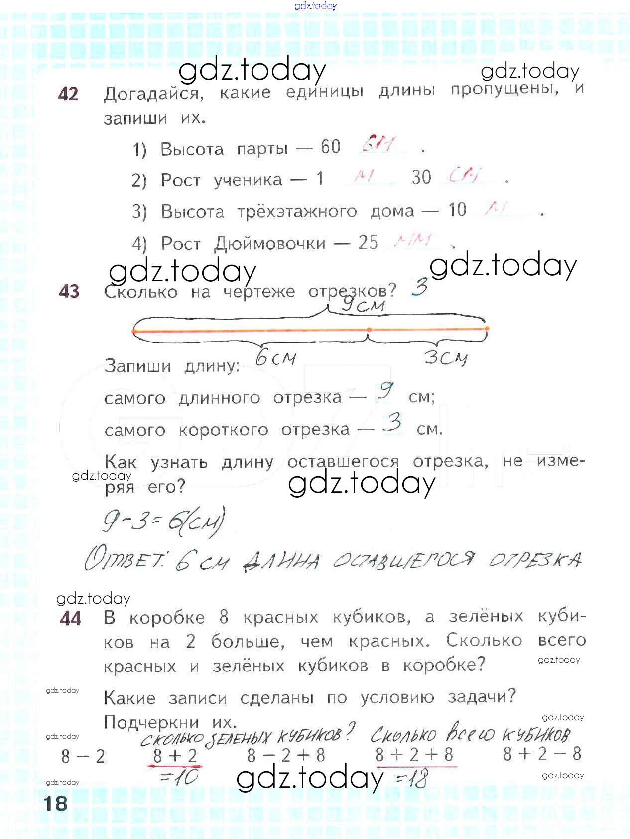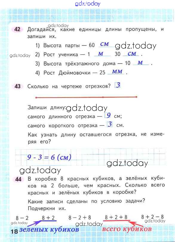 На страницах сайта gdz.today вы найдете учебный и вспомогательный материал, направленный на улучшения знаний школьной программы. ГДЗ - онлайн мир знаний Решение к части 1. Страницы 18 Рабочей тетради по Математике для 2 класса Волкова, Моро Просвещение Школа России 2016