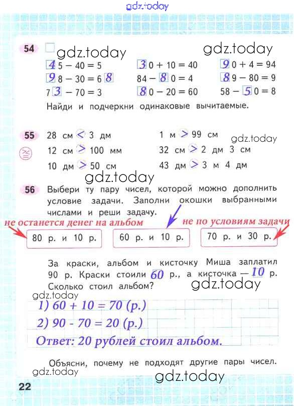 На страницах сайта gdz.today вы найдете учебный и вспомогательный материал, направленный на улучшения знаний школьной программы. ГДЗ - онлайн мир знаний Решение к части 1. Страницы 22 Рабочей тетради по Математике для 2 класса Волкова, Моро Просвещение Школа России 2016