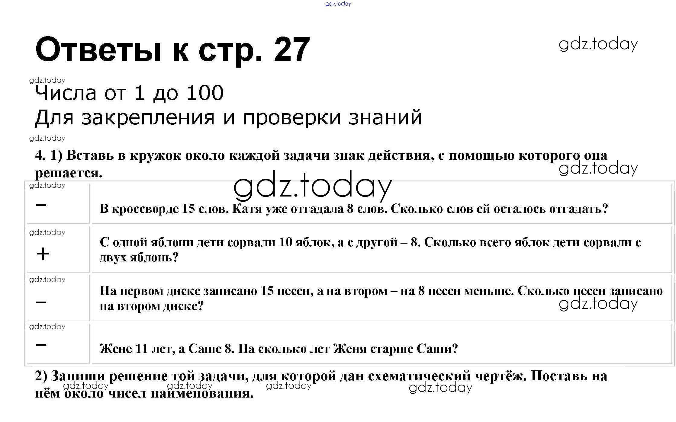 На страницах сайта gdz.today вы найдете учебный и вспомогательный материал, направленный на улучшения знаний школьной программы. ГДЗ - онлайн мир знаний Решение к части 1. Страницы 27 Рабочей тетради по Математике для 2 класса Волкова, Моро Просвещение Школа России 2016