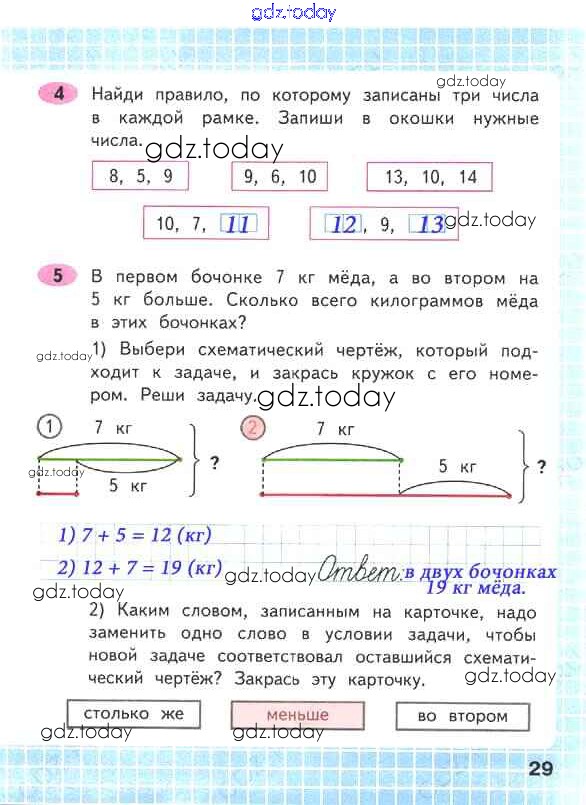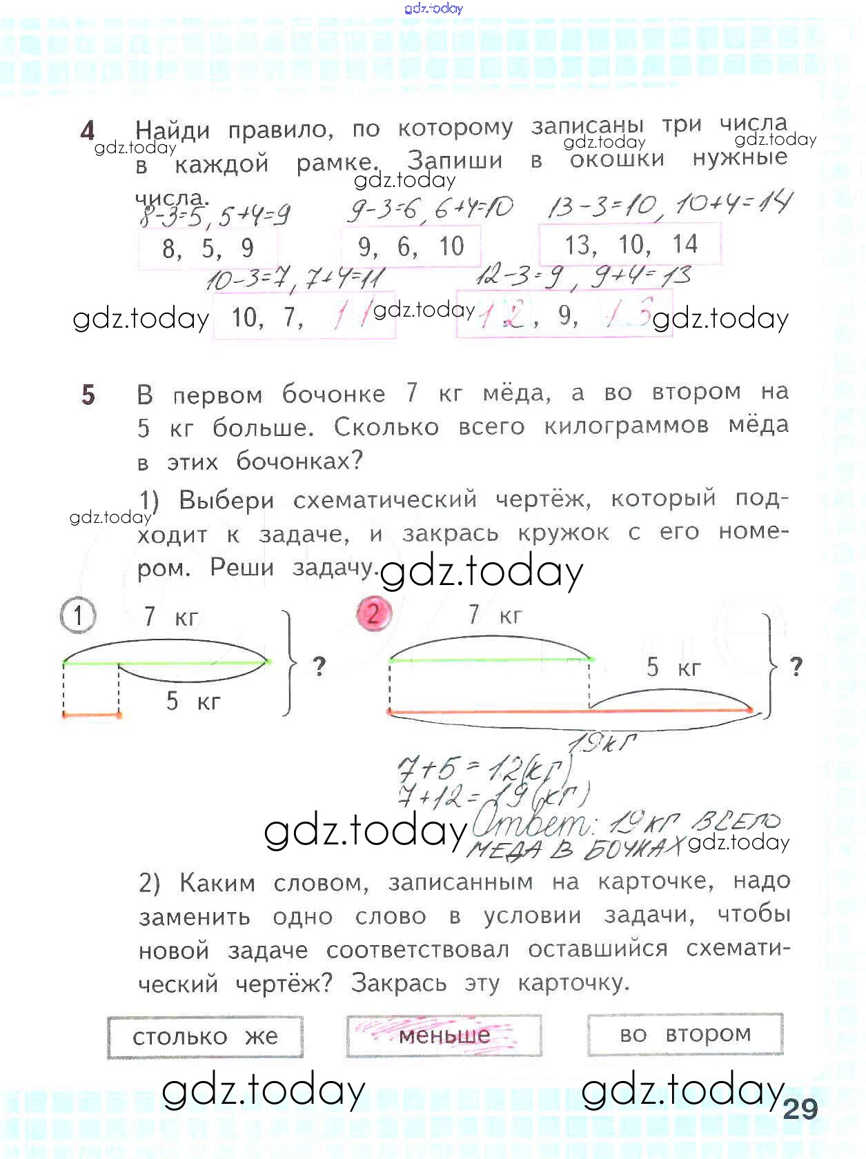 На страницах сайта gdz.today вы найдете учебный и вспомогательный материал, направленный на улучшения знаний школьной программы. ГДЗ - онлайн мир знаний Решение к части 1. Страницы 29 Рабочей тетради по Математике для 2 класса Волкова, Моро Просвещение Школа России 2016