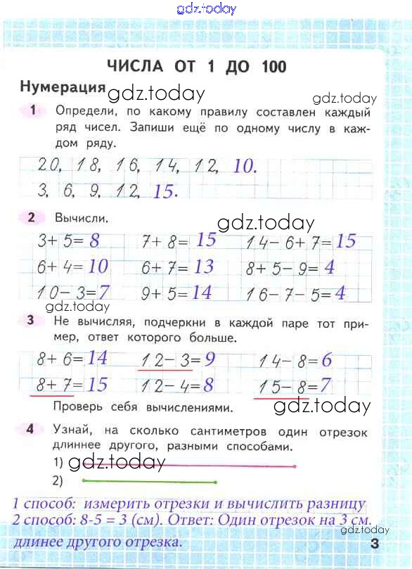 На страницах сайта gdz.today вы найдете учебный и вспомогательный материал, направленный на улучшения знаний школьной программы. ГДЗ - онлайн мир знаний Решение к части 1. Страницы 3 Рабочей тетради по Математике для 2 класса Волкова, Моро Просвещение Школа России 2016