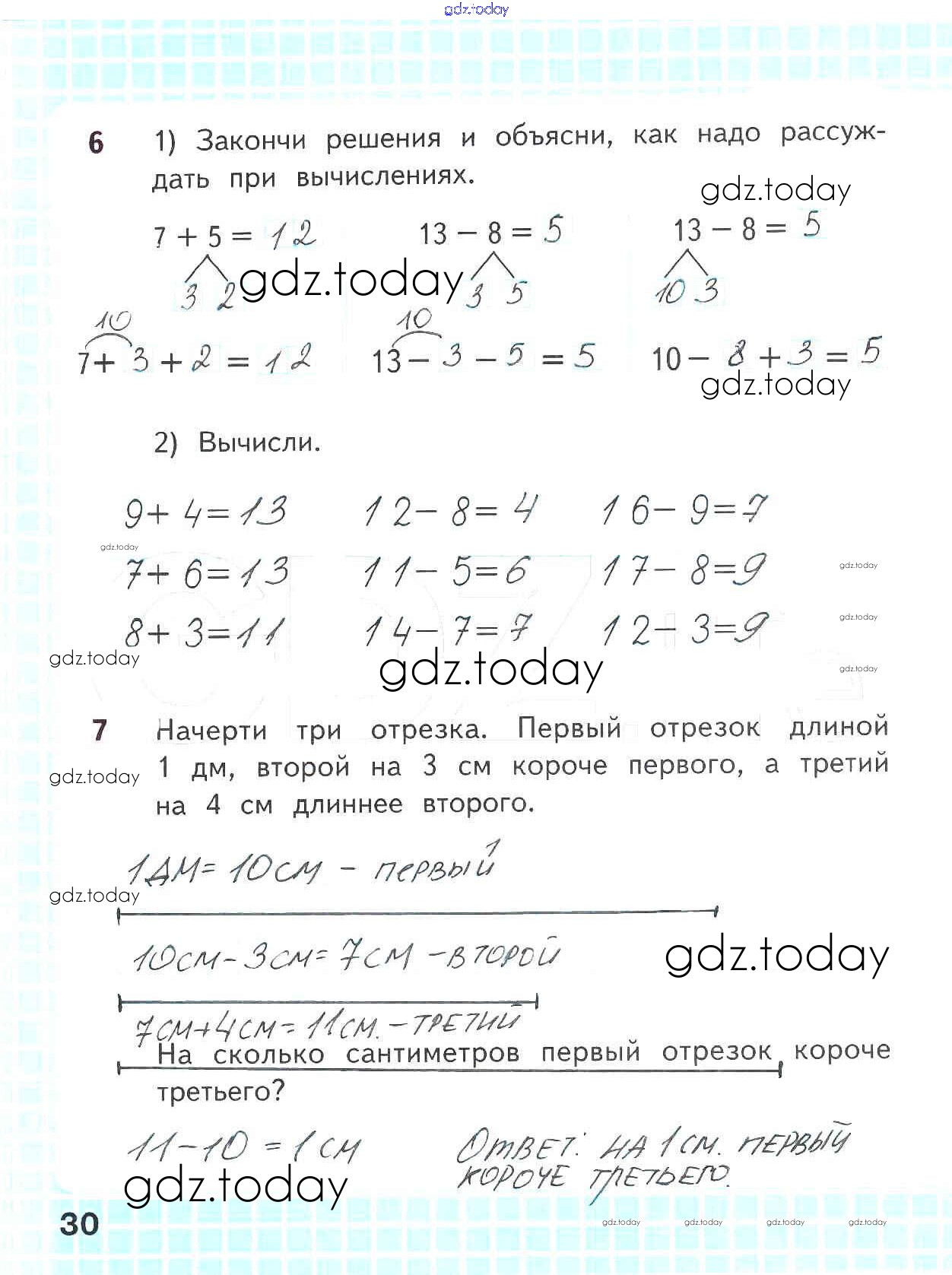 На страницах сайта gdz.today вы найдете учебный и вспомогательный материал, направленный на улучшения знаний школьной программы. ГДЗ - онлайн мир знаний Решение к части 1. Страницы 30 Рабочей тетради по Математике для 2 класса Волкова, Моро Просвещение Школа России 2016