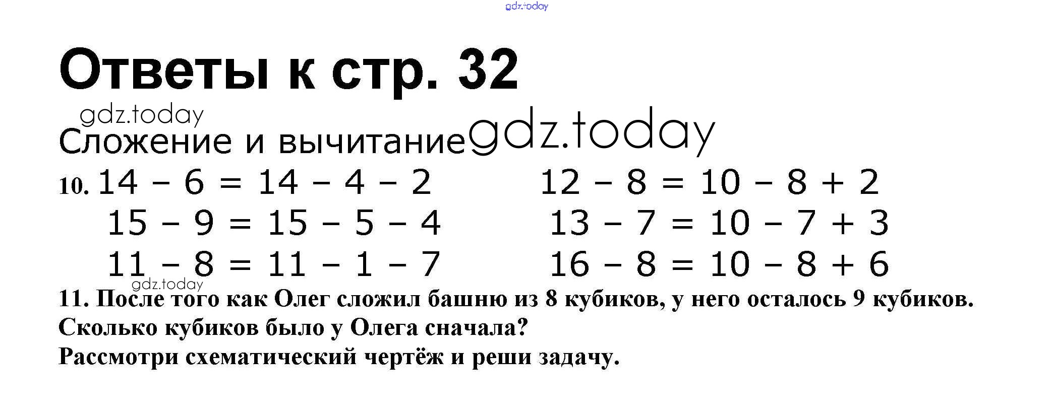 Ответы к Решение к части 1. Страницы 32 Рабочей тетради по Математике для 2 класса Волкова, Моро Просвещение Школа России 2016