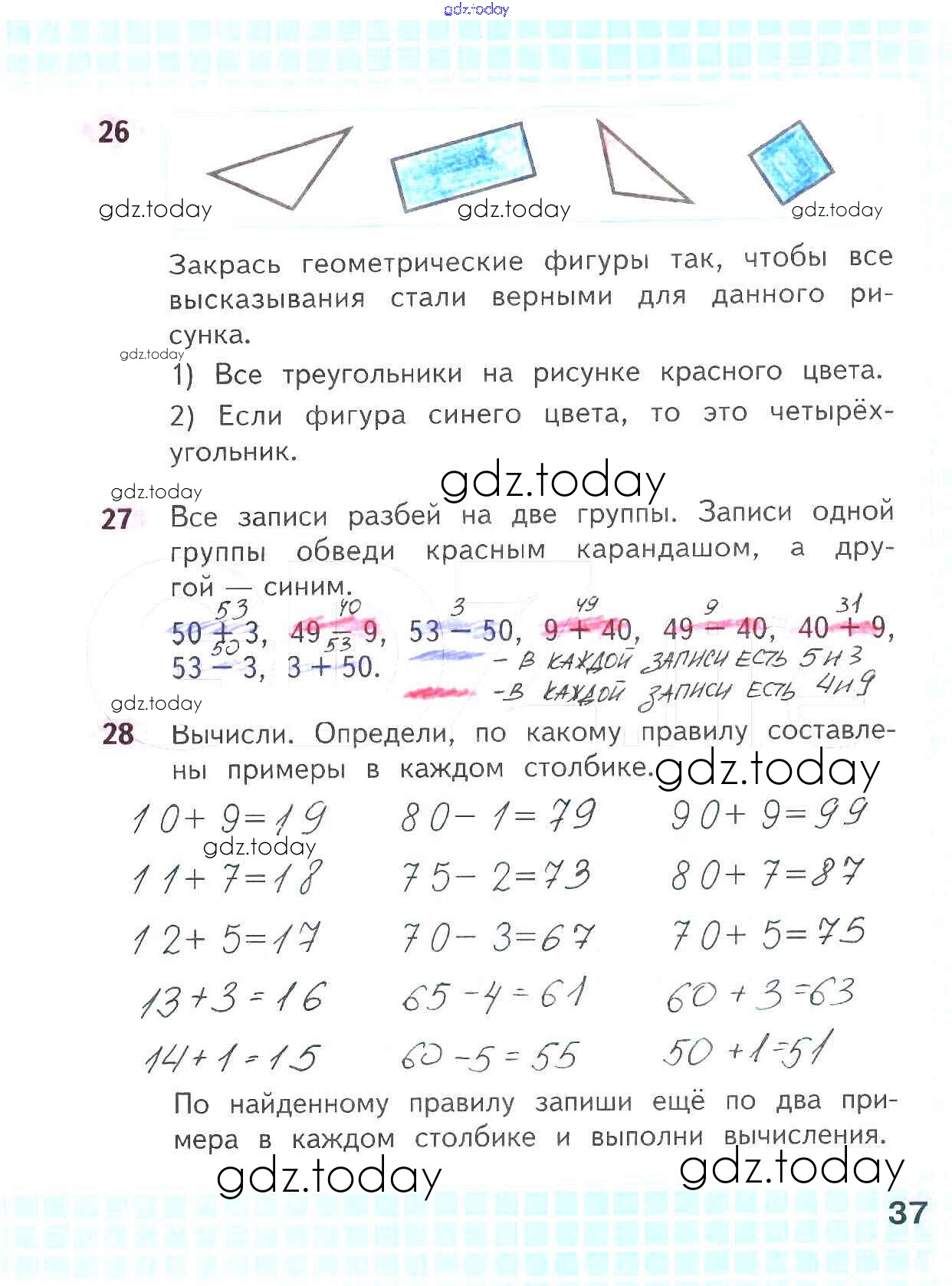 На страницах сайта gdz.today вы найдете учебный и вспомогательный материал, направленный на улучшения знаний школьной программы. ГДЗ - онлайн мир знаний Решение к части 1. Страницы 37 Рабочей тетради по Математике для 2 класса Волкова, Моро Просвещение Школа России 2016