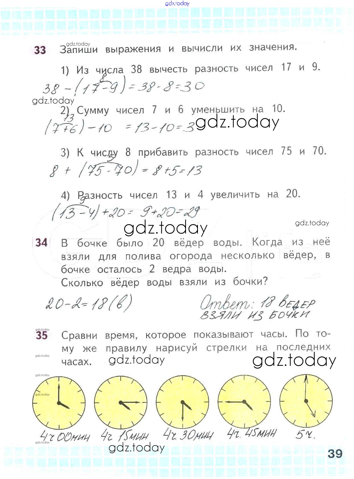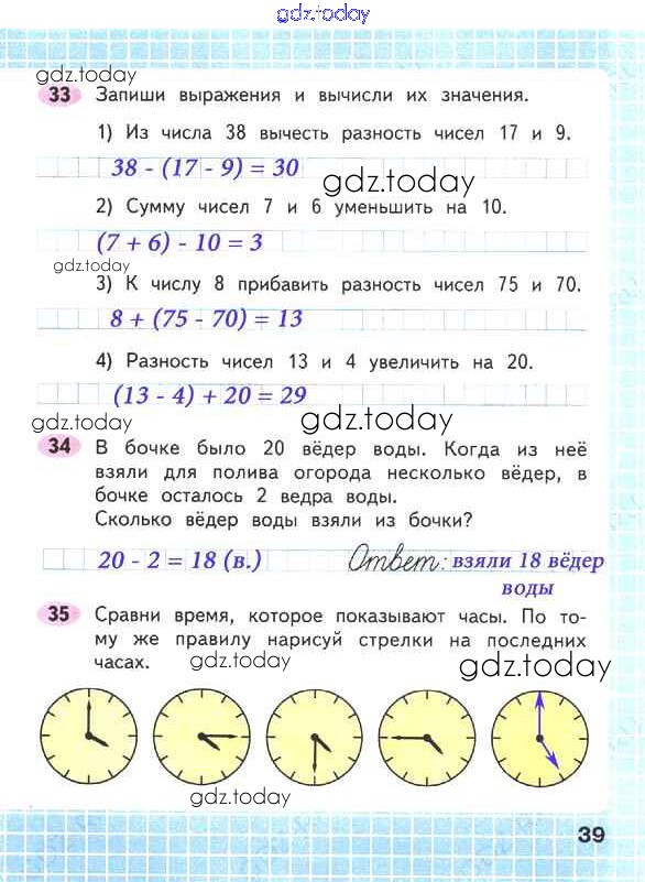 На страницах сайта gdz.today вы найдете учебный и вспомогательный материал, направленный на улучшения знаний школьной программы. ГДЗ - онлайн мир знаний Решение к части 1. Страницы 39 Рабочей тетради по Математике для 2 класса Волкова, Моро Просвещение Школа России 2016