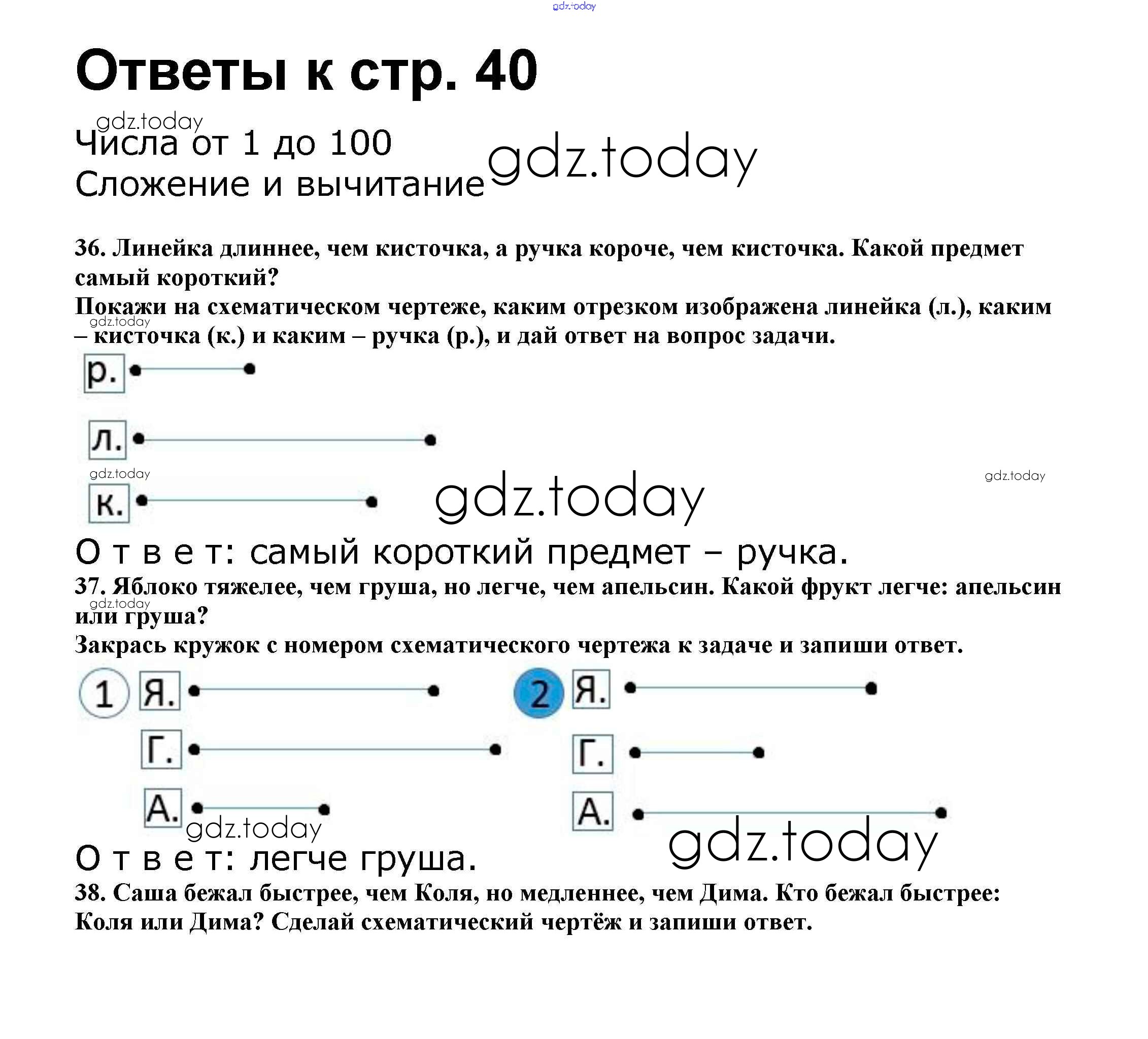 На страницах сайта gdz.today вы найдете учебный и вспомогательный материал, направленный на улучшения знаний школьной программы. ГДЗ - онлайн мир знаний Решение к части 1. Страницы 40 Рабочей тетради по Математике для 2 класса Волкова, Моро Просвещение Школа России 2016