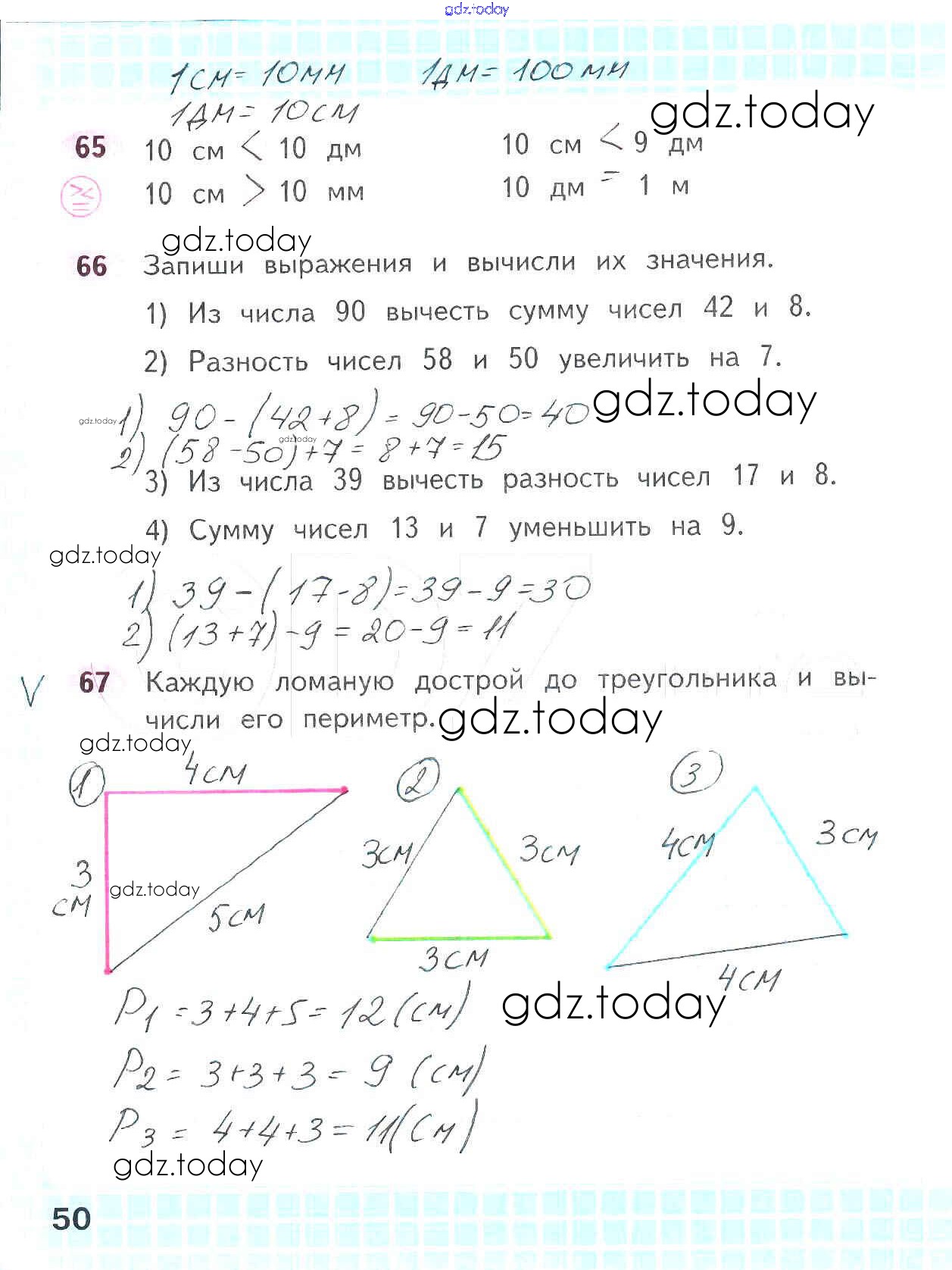 На страницах сайта gdz.today вы найдете учебный и вспомогательный материал, направленный на улучшения знаний школьной программы. ГДЗ - онлайн мир знаний Решение к части 1. Страницы 50 Рабочей тетради по Математике для 2 класса Волкова, Моро Просвещение Школа России 2016