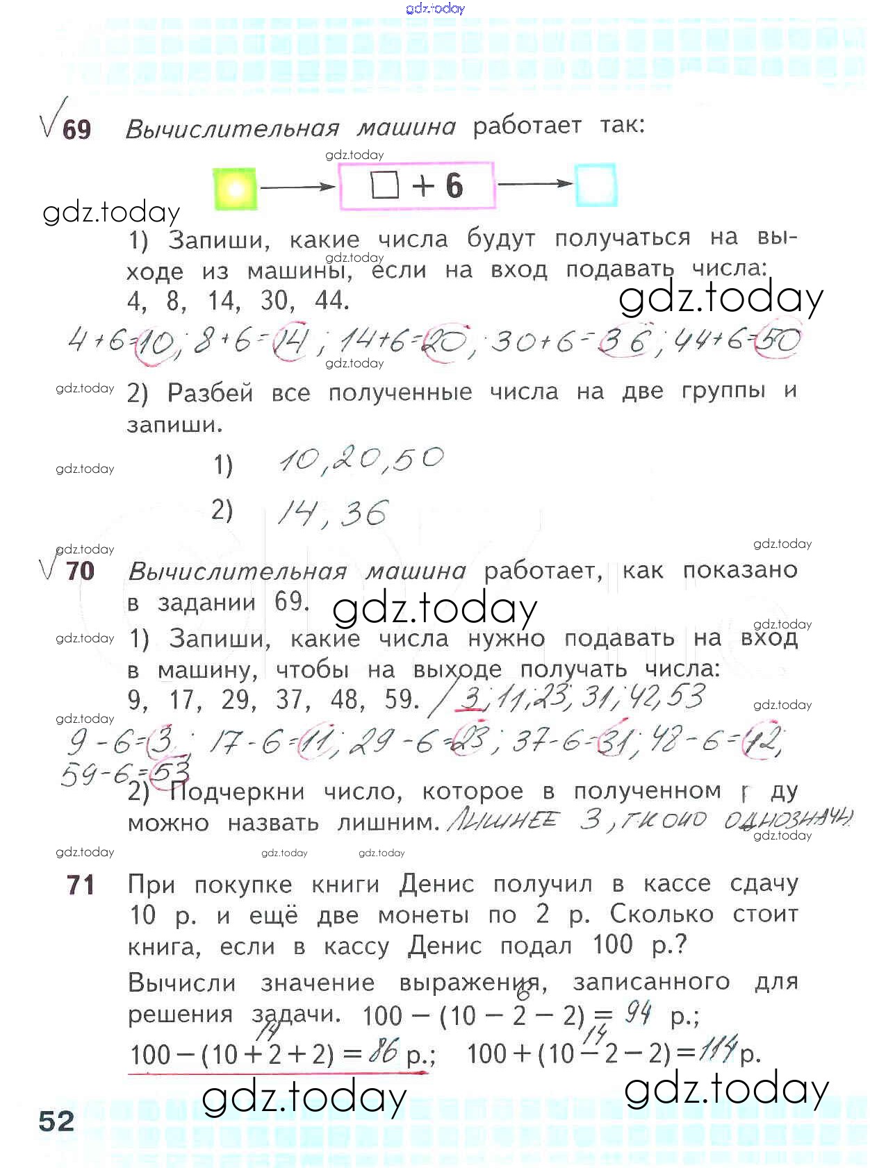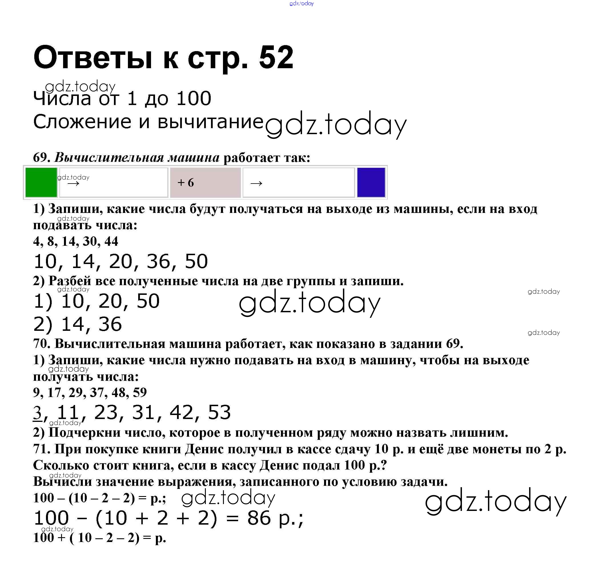 На страницах сайта gdz.today вы найдете учебный и вспомогательный материал, направленный на улучшения знаний школьной программы. ГДЗ - онлайн мир знаний Решение к части 1. Страницы 52 Рабочей тетради по Математике для 2 класса Волкова, Моро Просвещение Школа России 2016