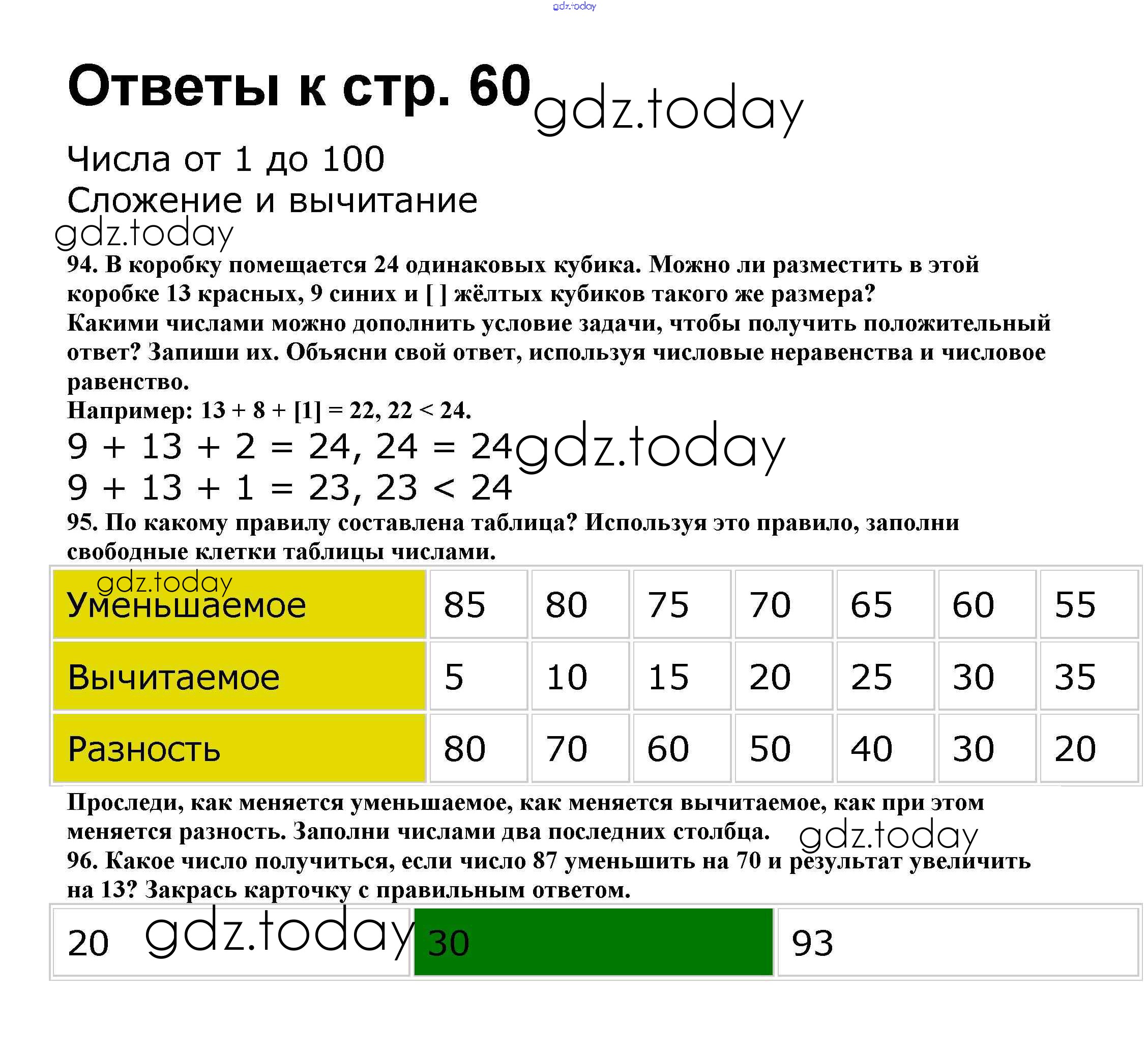На страницах сайта gdz.today вы найдете учебный и вспомогательный материал, направленный на улучшения знаний школьной программы. ГДЗ - онлайн мир знаний Решение к части 1. Страницы 60 Рабочей тетради по Математике для 2 класса Волкова, Моро Просвещение Школа России 2016