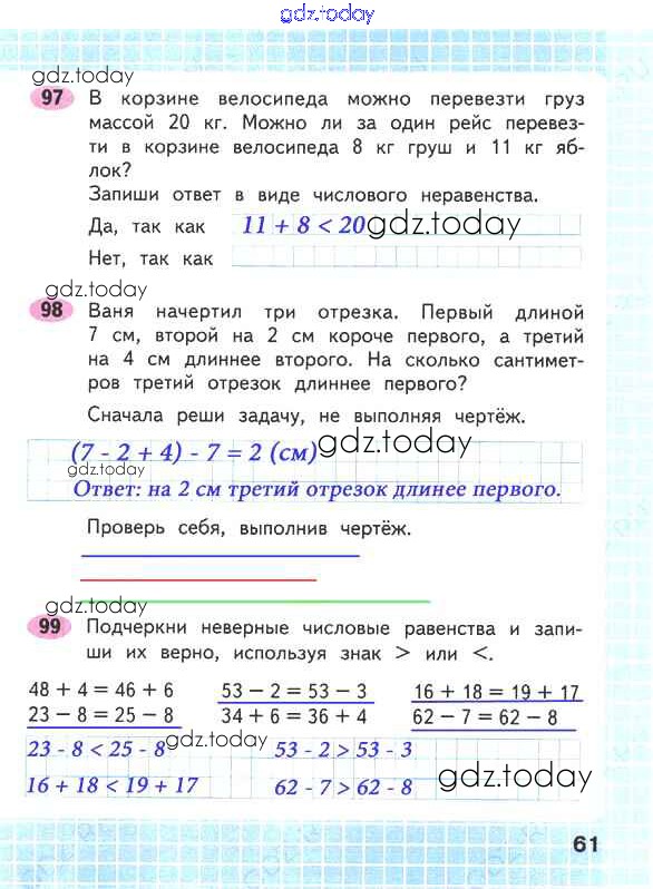 На страницах сайта gdz.today вы найдете учебный и вспомогательный материал, направленный на улучшения знаний школьной программы. ГДЗ - онлайн мир знаний Решение к части 1. Страницы 61 Рабочей тетради по Математике для 2 класса Волкова, Моро Просвещение Школа России 2016