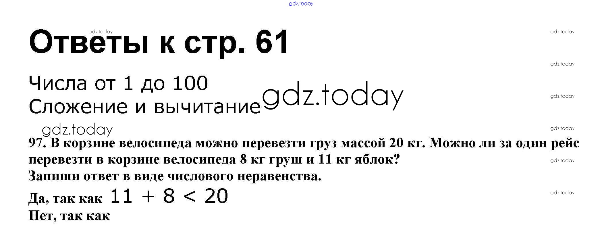 Ответы к Решение к части 1. Страницы 61 Рабочей тетради по Математике для 2 класса Волкова, Моро Просвещение Школа России 2016