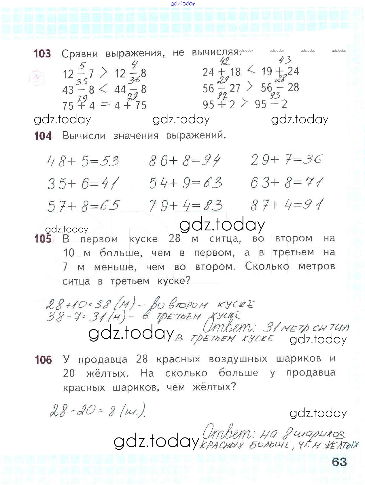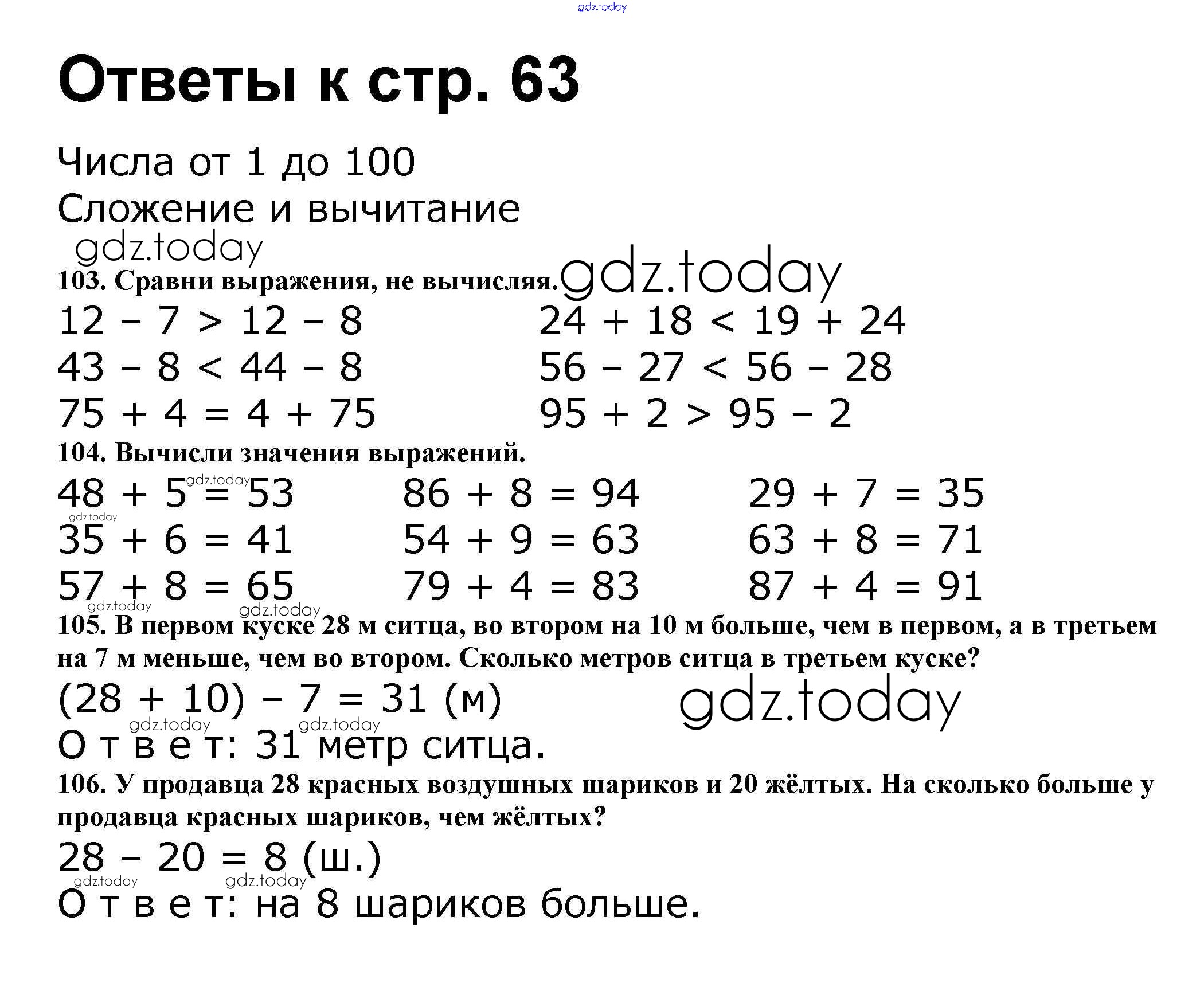На страницах сайта gdz.today вы найдете учебный и вспомогательный материал, направленный на улучшения знаний школьной программы. ГДЗ - онлайн мир знаний Решение к части 1. Страницы 63 Рабочей тетради по Математике для 2 класса Волкова, Моро Просвещение Школа России 2016