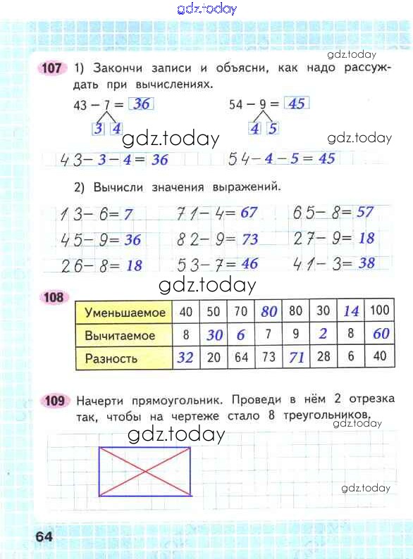 На страницах сайта gdz.today вы найдете учебный и вспомогательный материал, направленный на улучшения знаний школьной программы. ГДЗ - онлайн мир знаний Решение к части 1. Страницы 64 Рабочей тетради по Математике для 2 класса Волкова, Моро Просвещение Школа России 2016