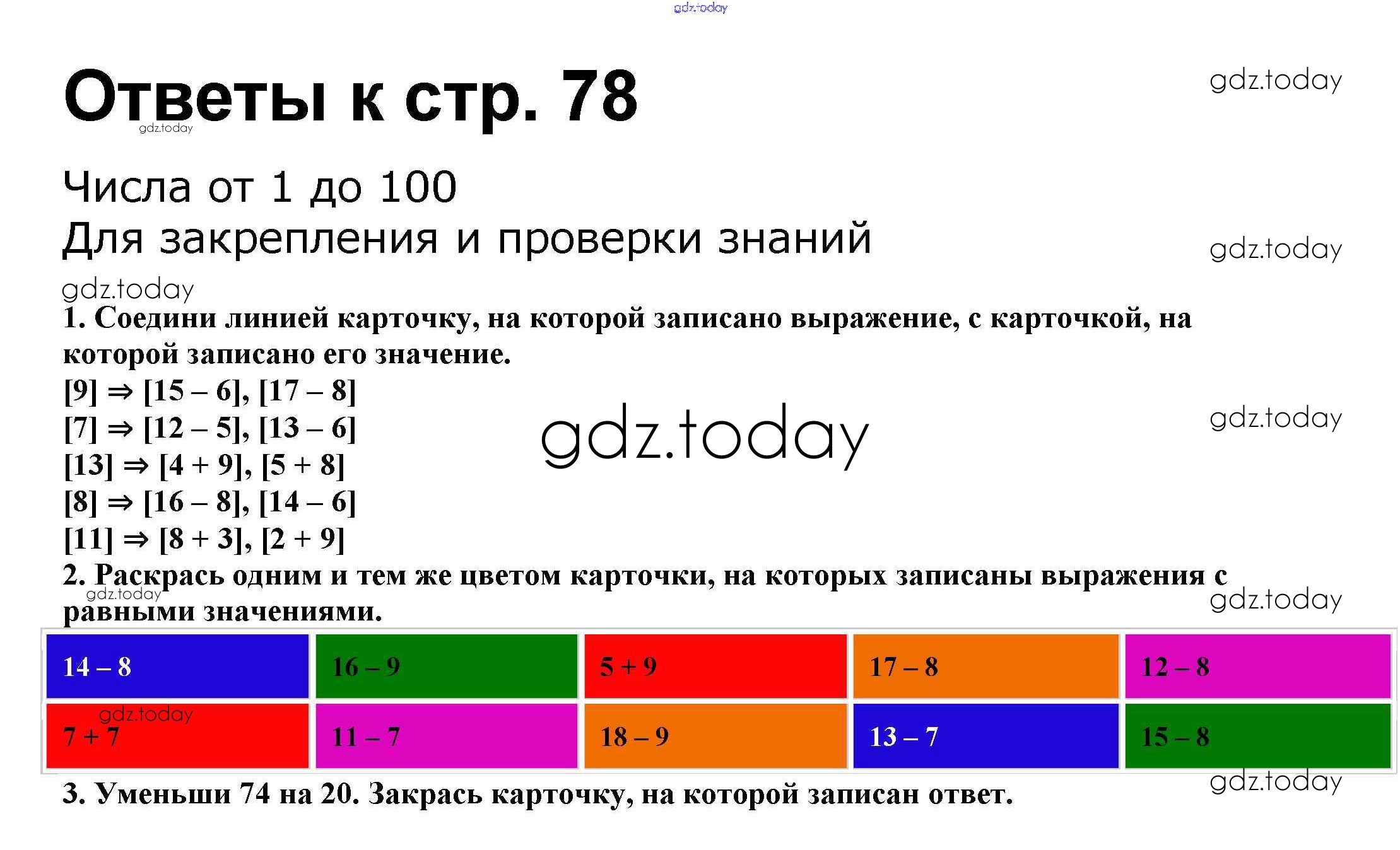 На страницах сайта gdz.today вы найдете учебный и вспомогательный материал, направленный на улучшения знаний школьной программы. ГДЗ - онлайн мир знаний Решение к части 1. Страницы 78 Рабочей тетради по Математике для 2 класса Волкова, Моро Просвещение Школа России 2016