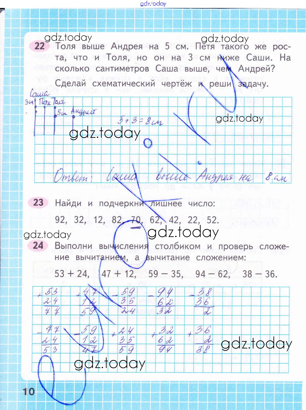 На страницах сайта gdz.today вы найдете учебный и вспомогательный материал, направленный на улучшения знаний школьной программы. ГДЗ - онлайн мир знаний Решение к части 2. Страницы 10 Рабочей тетради по Математике для 2 класса Волкова, Моро Просвещение Школа России 2016