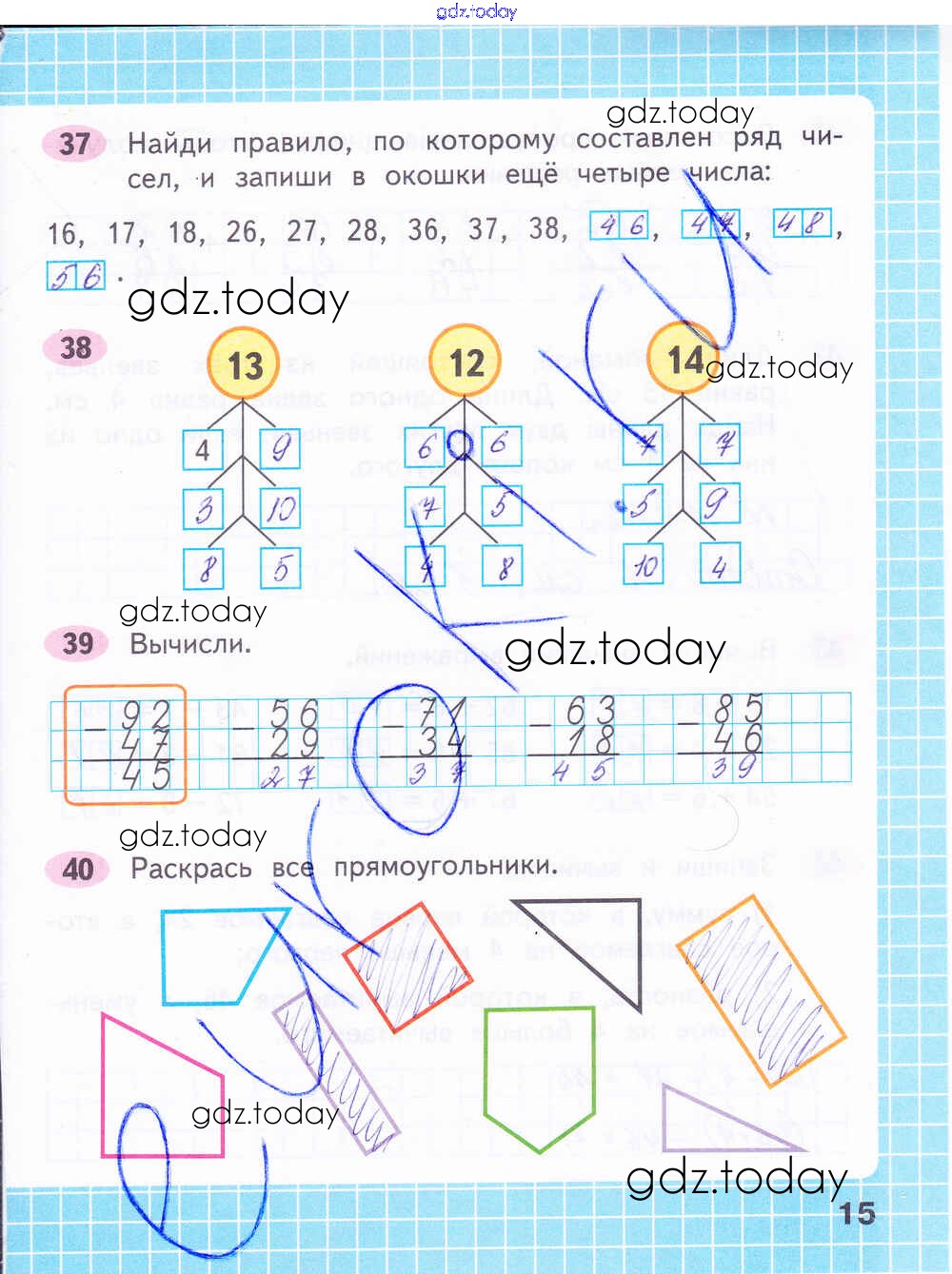 На страницах сайта gdz.today вы найдете учебный и вспомогательный материал, направленный на улучшения знаний школьной программы. ГДЗ - онлайн мир знаний Решение к части 2. Страницы 15 Рабочей тетради по Математике для 2 класса Волкова, Моро Просвещение Школа России 2016