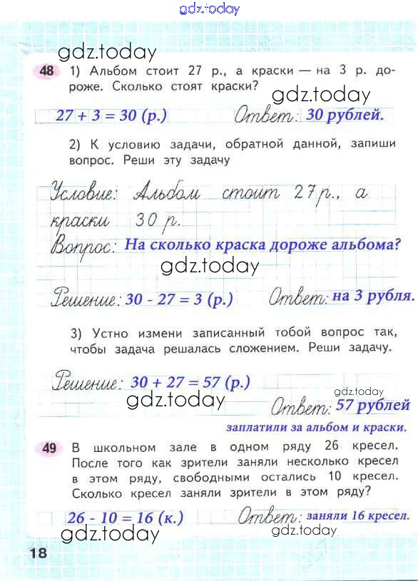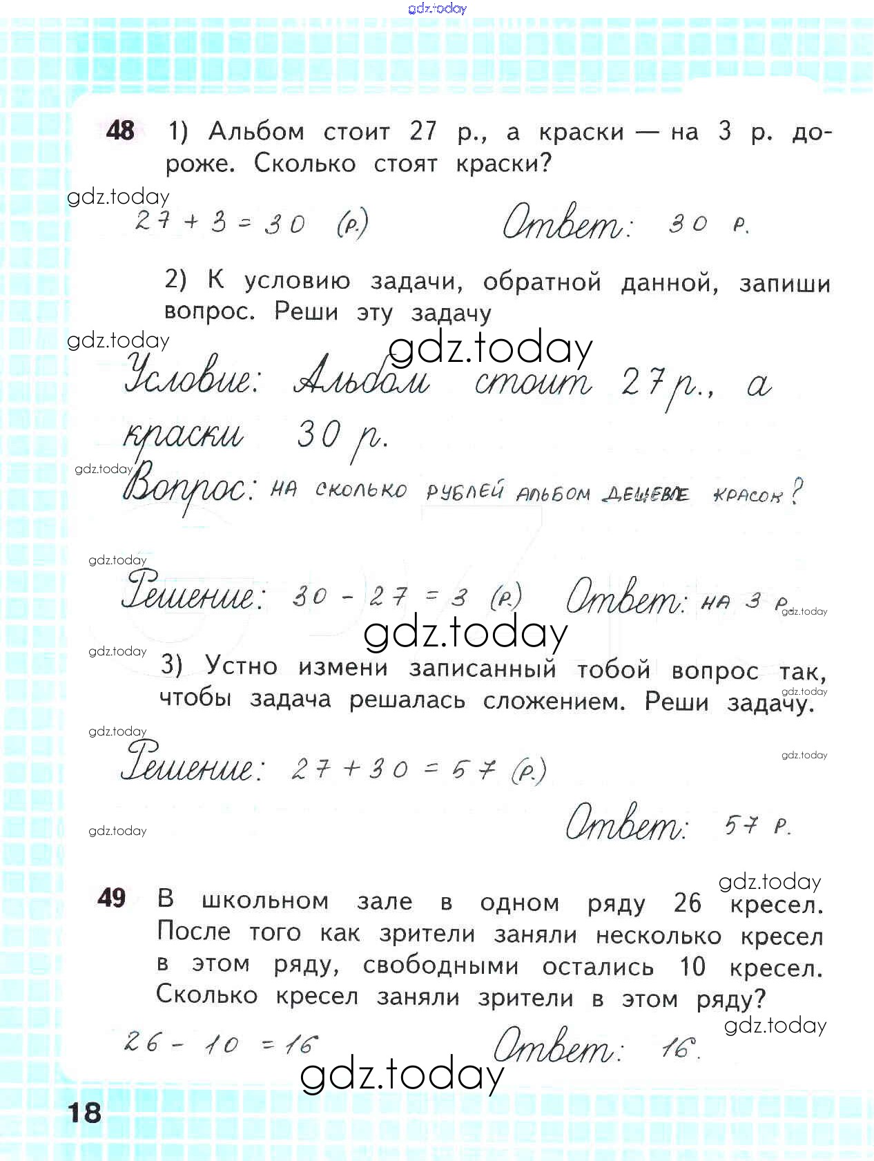 Ответы к Решение к части 2. Страницы 18 Рабочей тетради по Математике для 2 класса Волкова, Моро Просвещение Школа России 2016