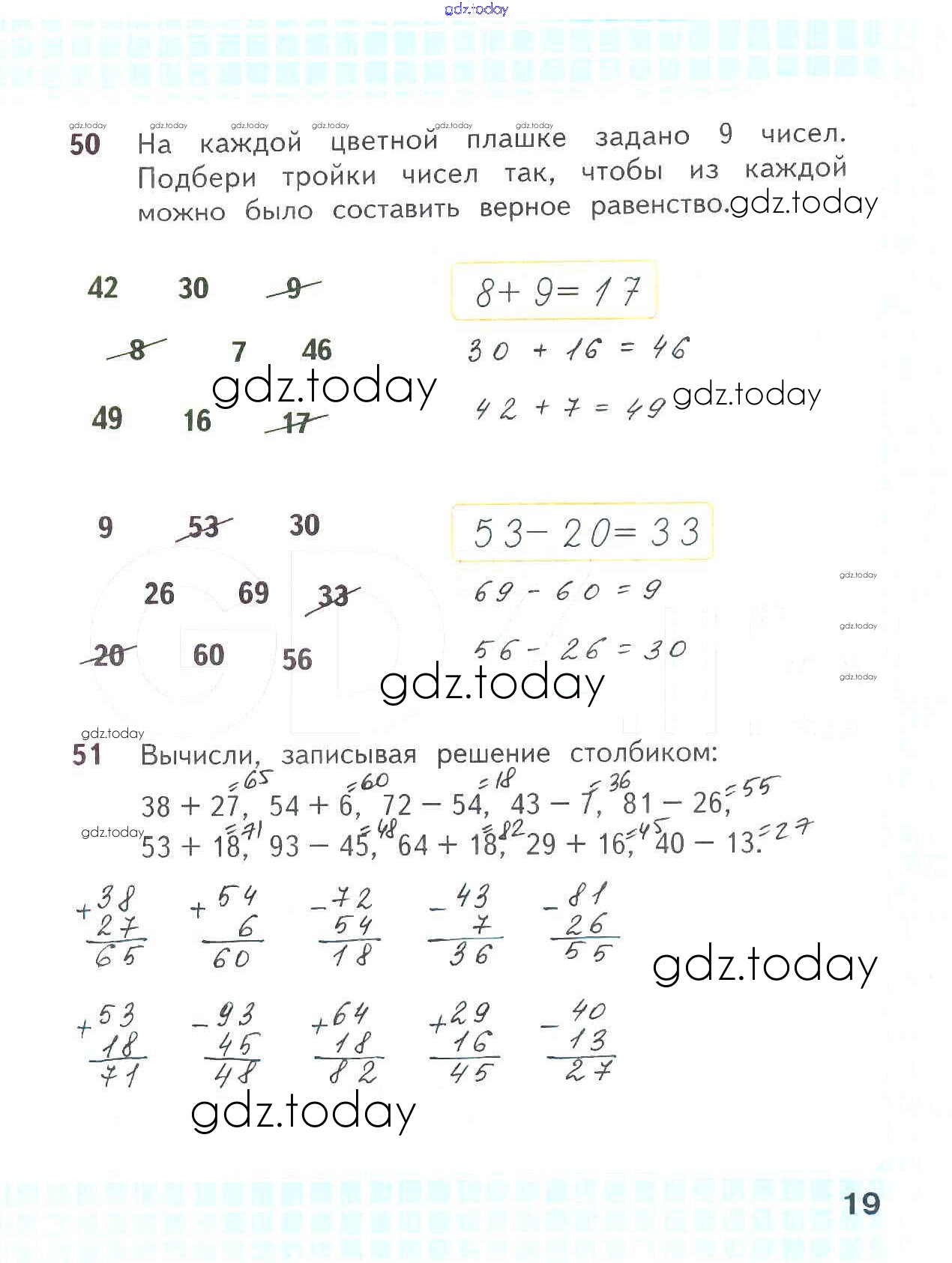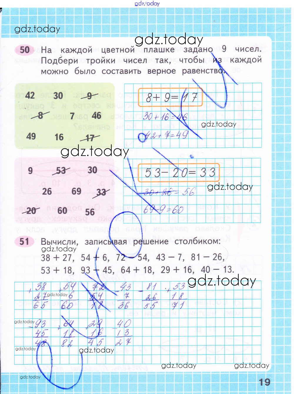 На страницах сайта gdz.today вы найдете учебный и вспомогательный материал, направленный на улучшения знаний школьной программы. ГДЗ - онлайн мир знаний Решение к части 2. Страницы 19 Рабочей тетради по Математике для 2 класса Волкова, Моро Просвещение Школа России 2016