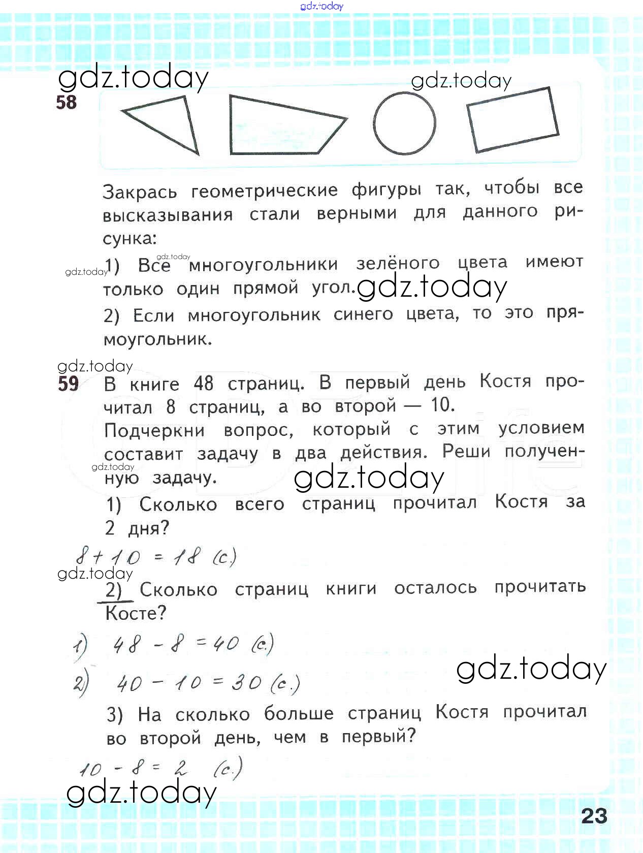 На страницах сайта gdz.today вы найдете учебный и вспомогательный материал, направленный на улучшения знаний школьной программы. ГДЗ - онлайн мир знаний Решение к части 2. Страницы 23 Рабочей тетради по Математике для 2 класса Волкова, Моро Просвещение Школа России 2016