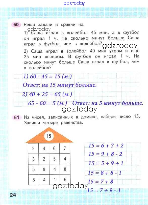 На страницах сайта gdz.today вы найдете учебный и вспомогательный материал, направленный на улучшения знаний школьной программы. ГДЗ - онлайн мир знаний Решение к части 2. Страницы 24 Рабочей тетради по Математике для 2 класса Волкова, Моро Просвещение Школа России 2016