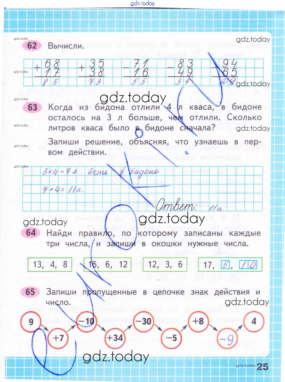На страницах сайта gdz.today вы найдете учебный и вспомогательный материал, направленный на улучшения знаний школьной программы. ГДЗ - онлайн мир знаний Решение к части 2. Страницы 25 Рабочей тетради по Математике для 2 класса Волкова, Моро Просвещение Школа России 2016