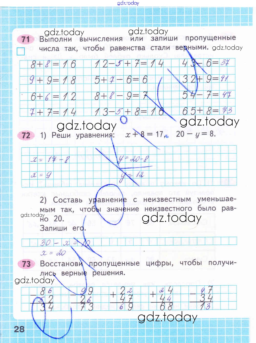 На страницах сайта gdz.today вы найдете учебный и вспомогательный материал, направленный на улучшения знаний школьной программы. ГДЗ - онлайн мир знаний Решение к части 2. Страницы 28 Рабочей тетради по Математике для 2 класса Волкова, Моро Просвещение Школа России 2016